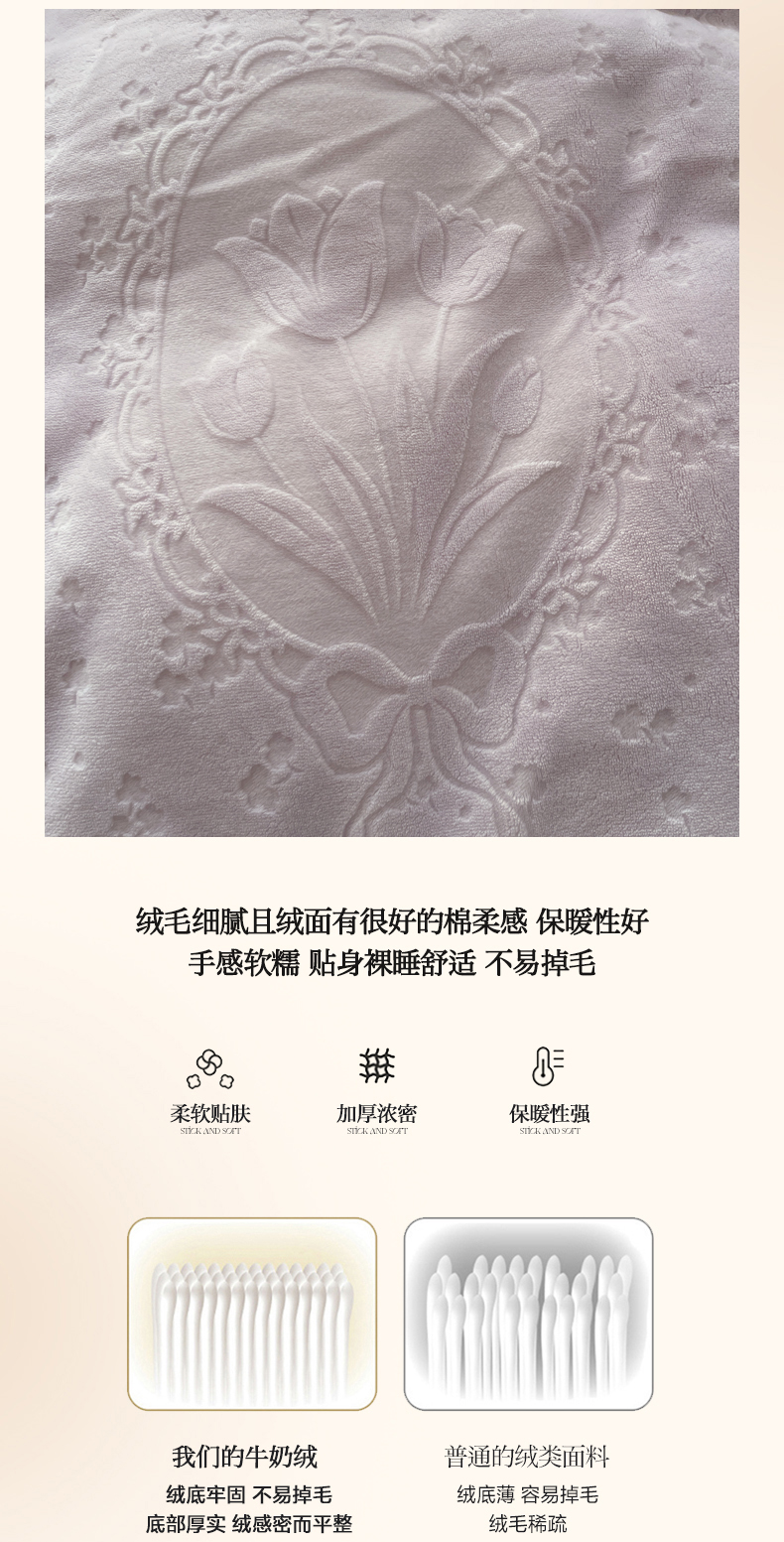 (总)三朵家纺 2025新款3D立体加厚雕花绒牛奶绒四件套-米兰系列,米兰-灰,米兰-蓝,米兰-玉,米兰-紫