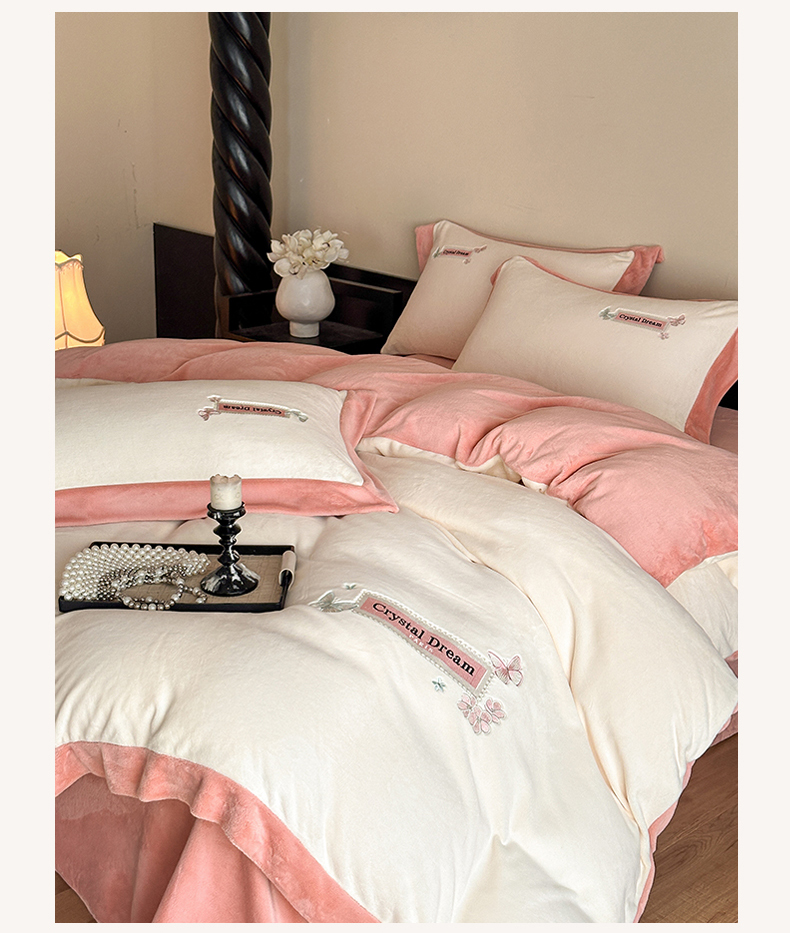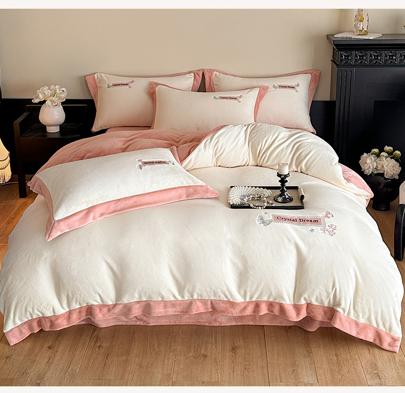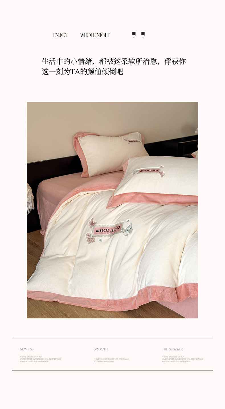 当前位置: 91家纺网 > 商品网购 > 床品套件 > 四件套 > 牛奶绒四件套 > 梦幻之城 2025新款牛奶绒刺绣款四件套-梦菲 梦菲-奶白+橙意粉