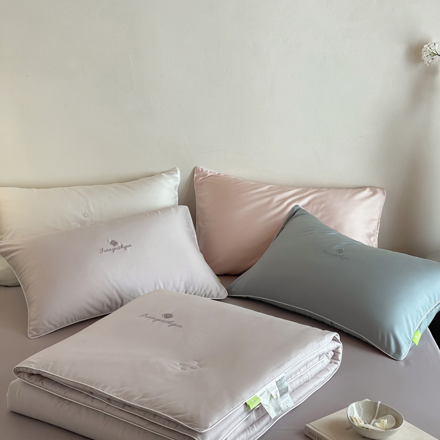 • 91家纺网 家纺一手货源 找家纺 (总)茧羽世家 2025新款植物羊绒温感被子被芯,组合图,月白灰,浅藕玉,云絮白