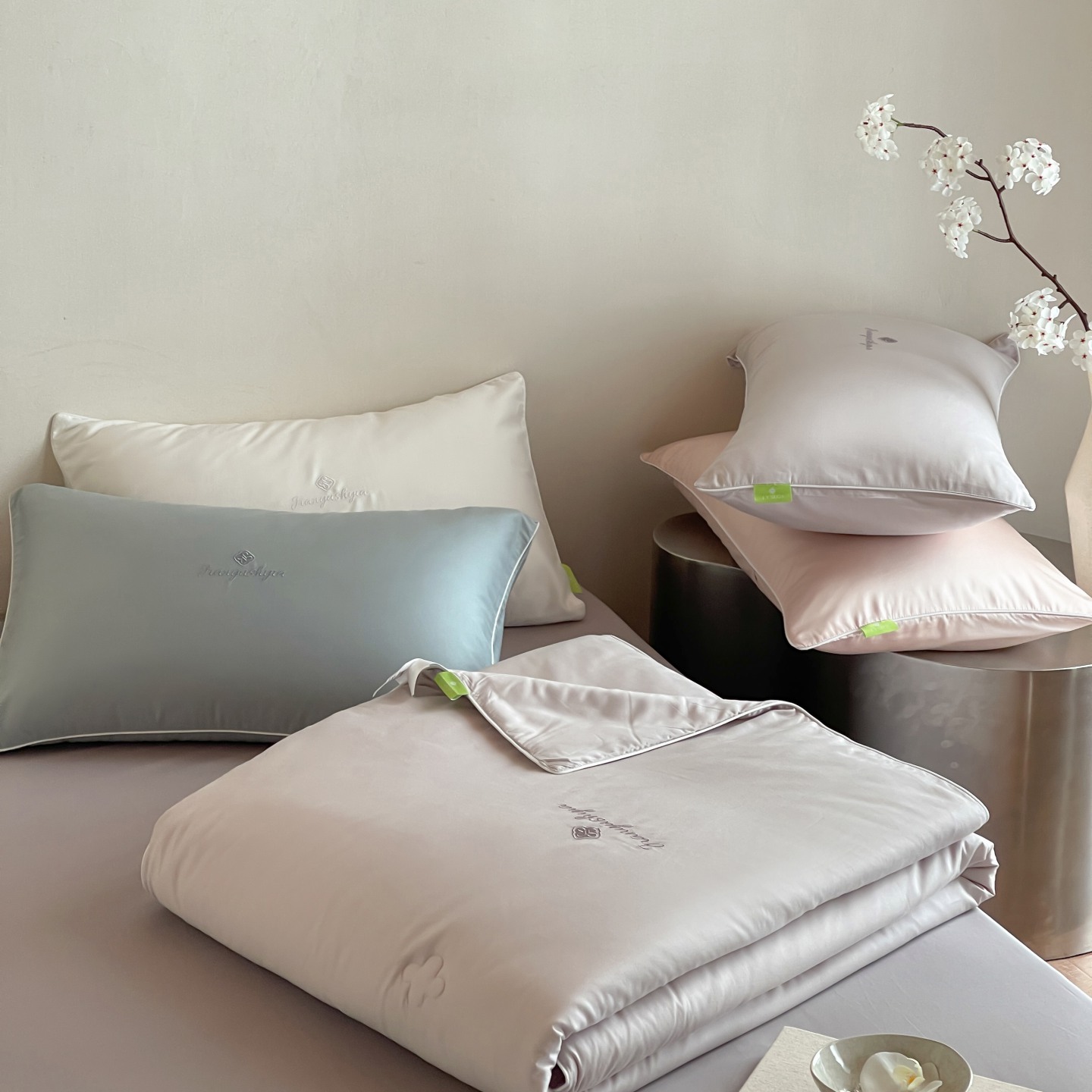 (总)茧羽世家 2025新款植物羊绒温感被子被芯,组合图,月白灰,浅藕玉,云絮白