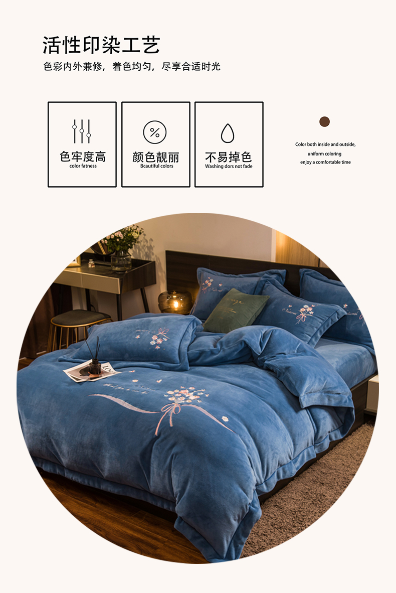 商品名称:绒博士 2025新款220g高克重博士绒秋冬保暖四件套--倾城之恋 倾城之恋 幽兰