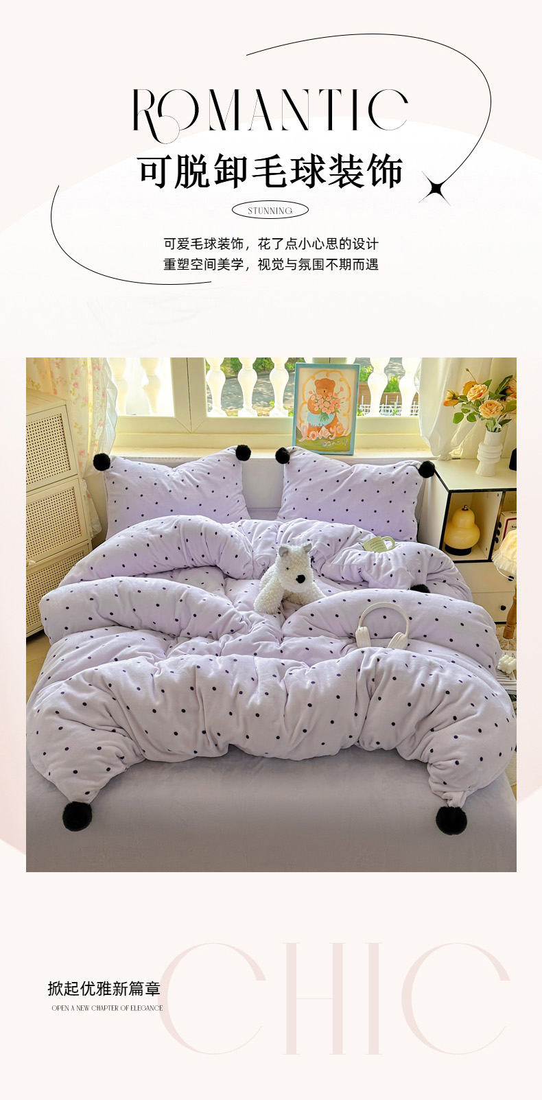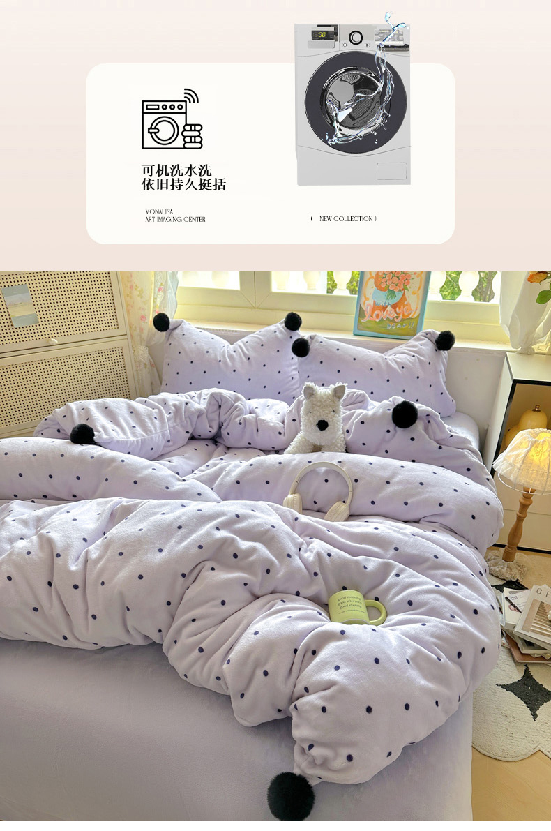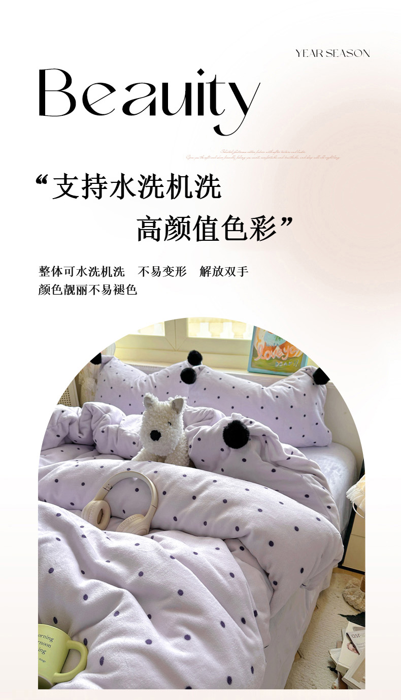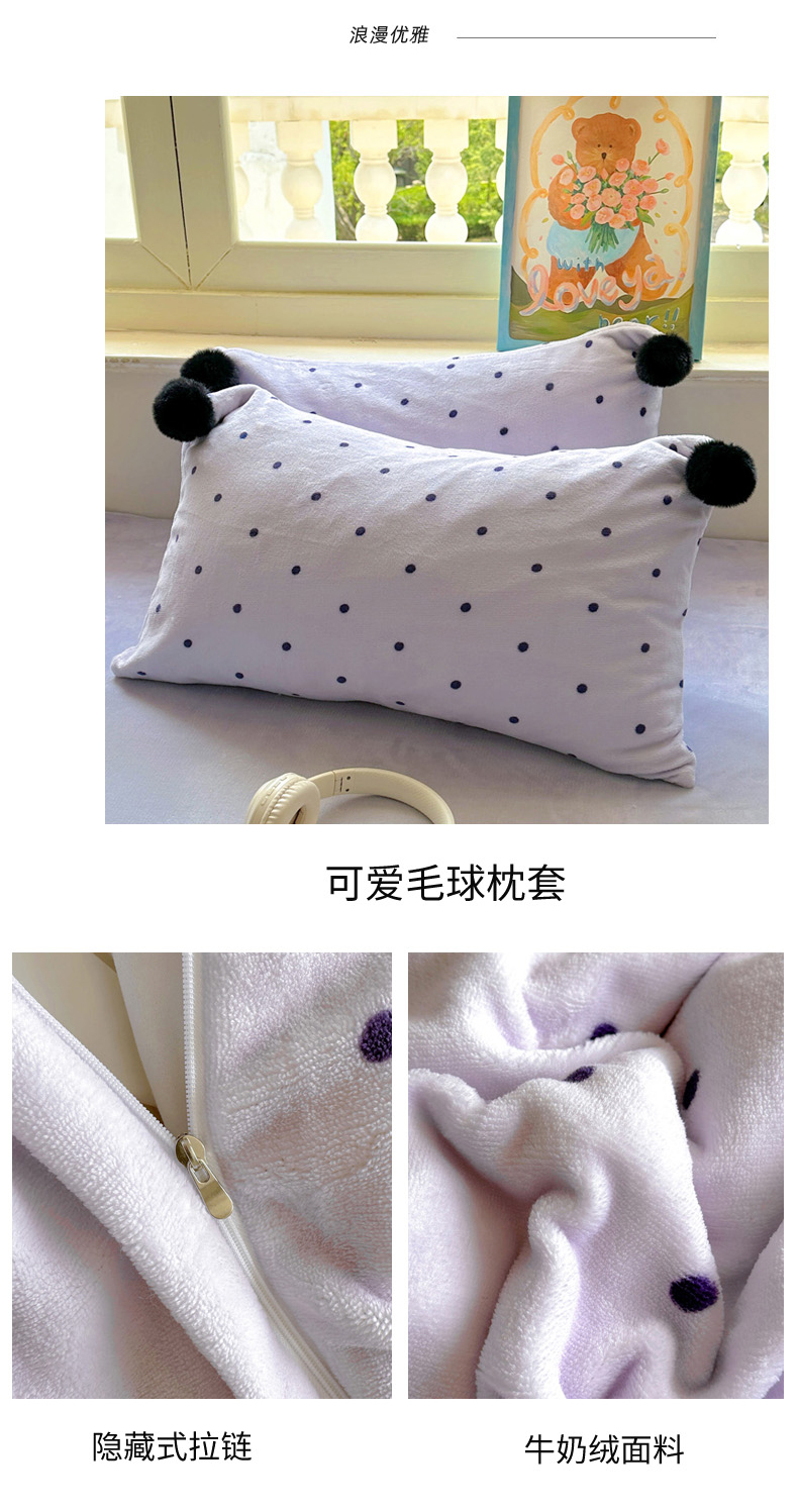 当前位置: 91家纺网 > 商品网购 > 床品套件 > 四件套 > 牛奶绒四件套 > 丽涵家纺 2025秋冬新品混搭波点牛奶绒四件套三件套-拍摄风格二 波点-紫色