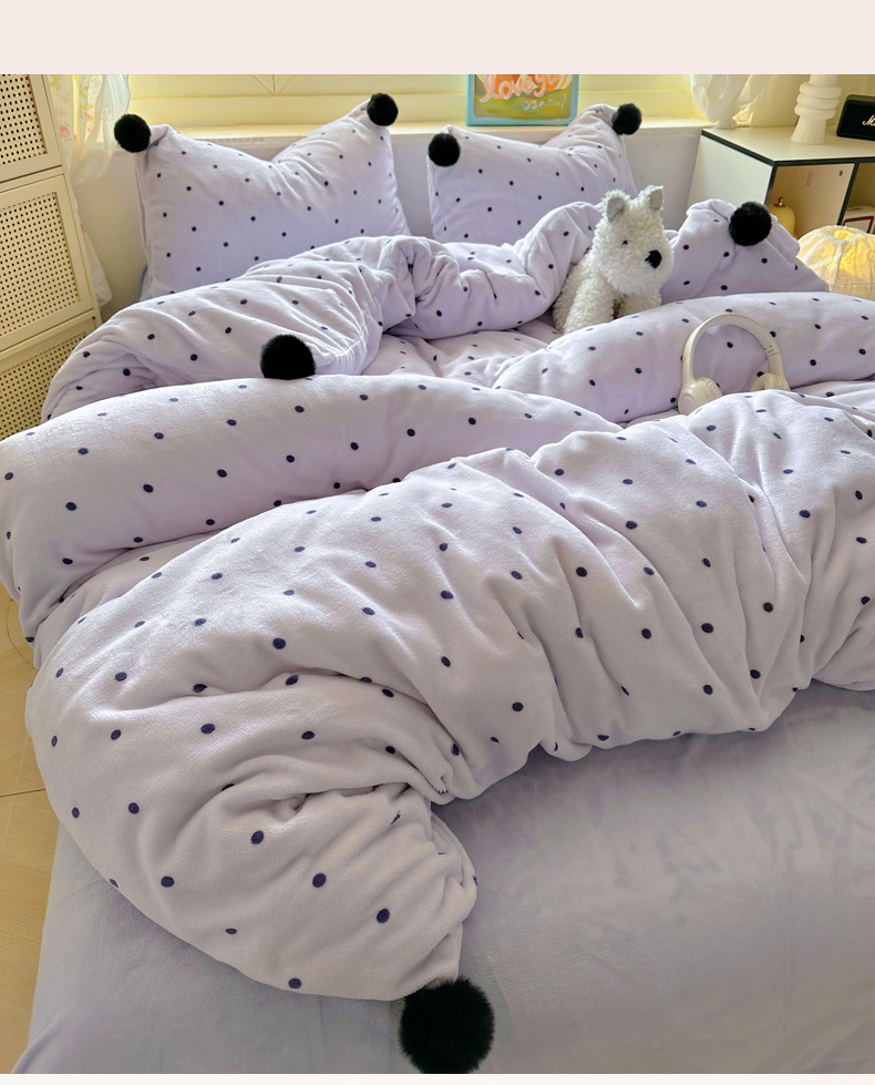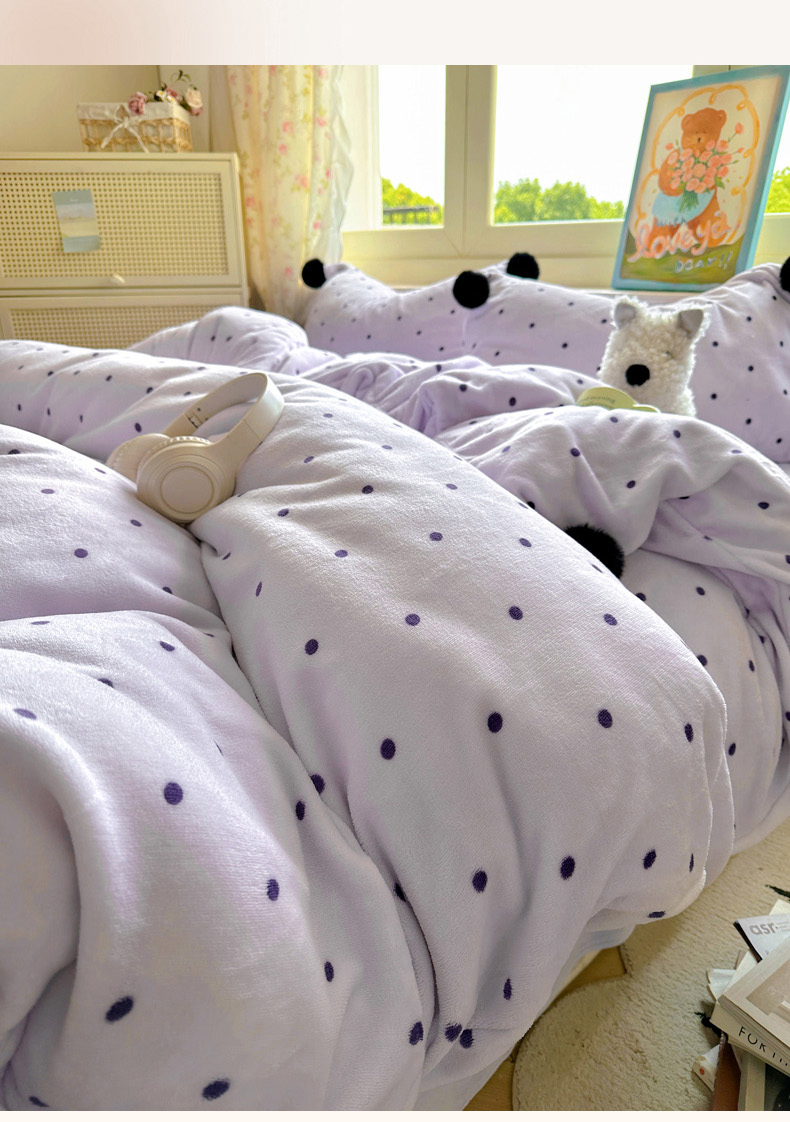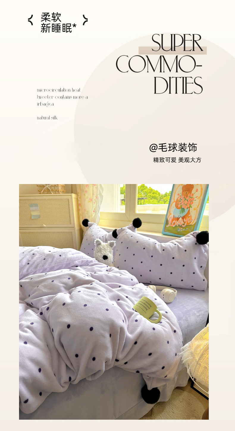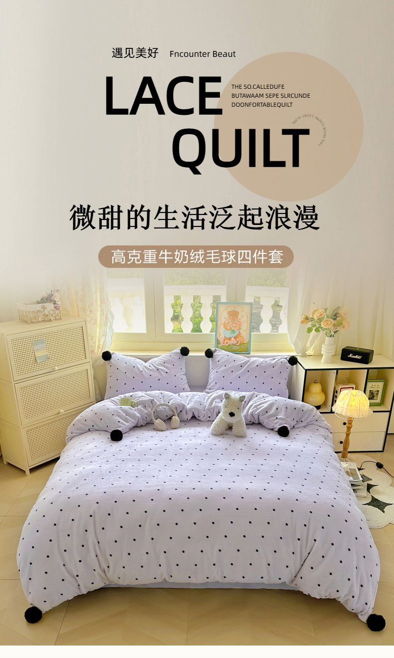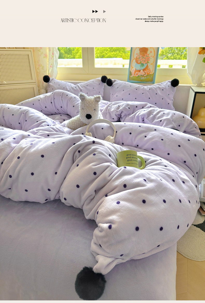 当前位置: 91家纺网 > 商品网购 > 床品套件 > 四件套 > 牛奶绒四件套 > 丽涵家纺 2025秋冬新品混搭波点牛奶绒四件套三件套-拍摄风格二 波点-紫色