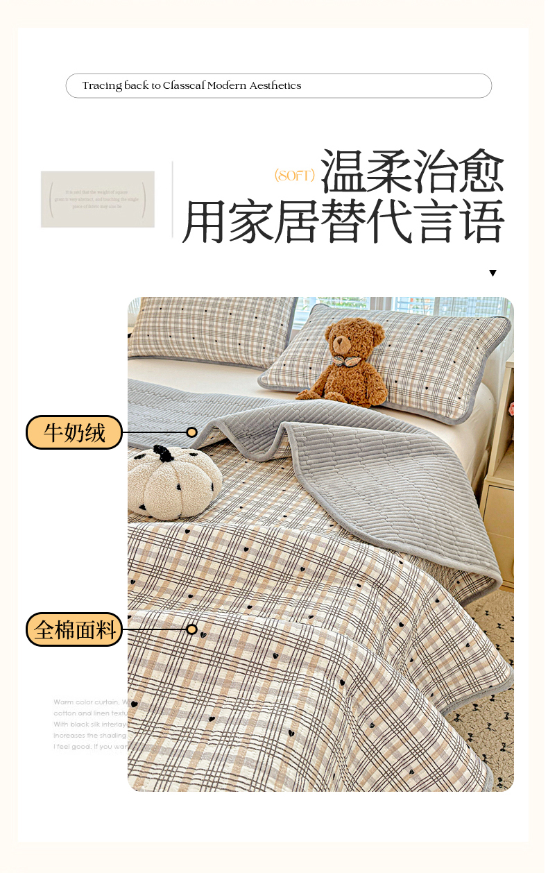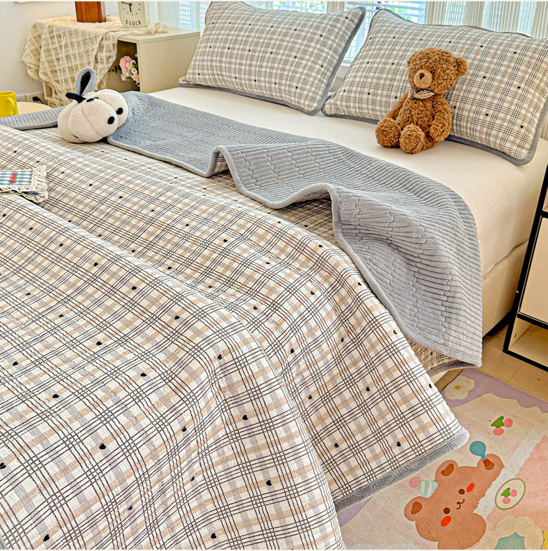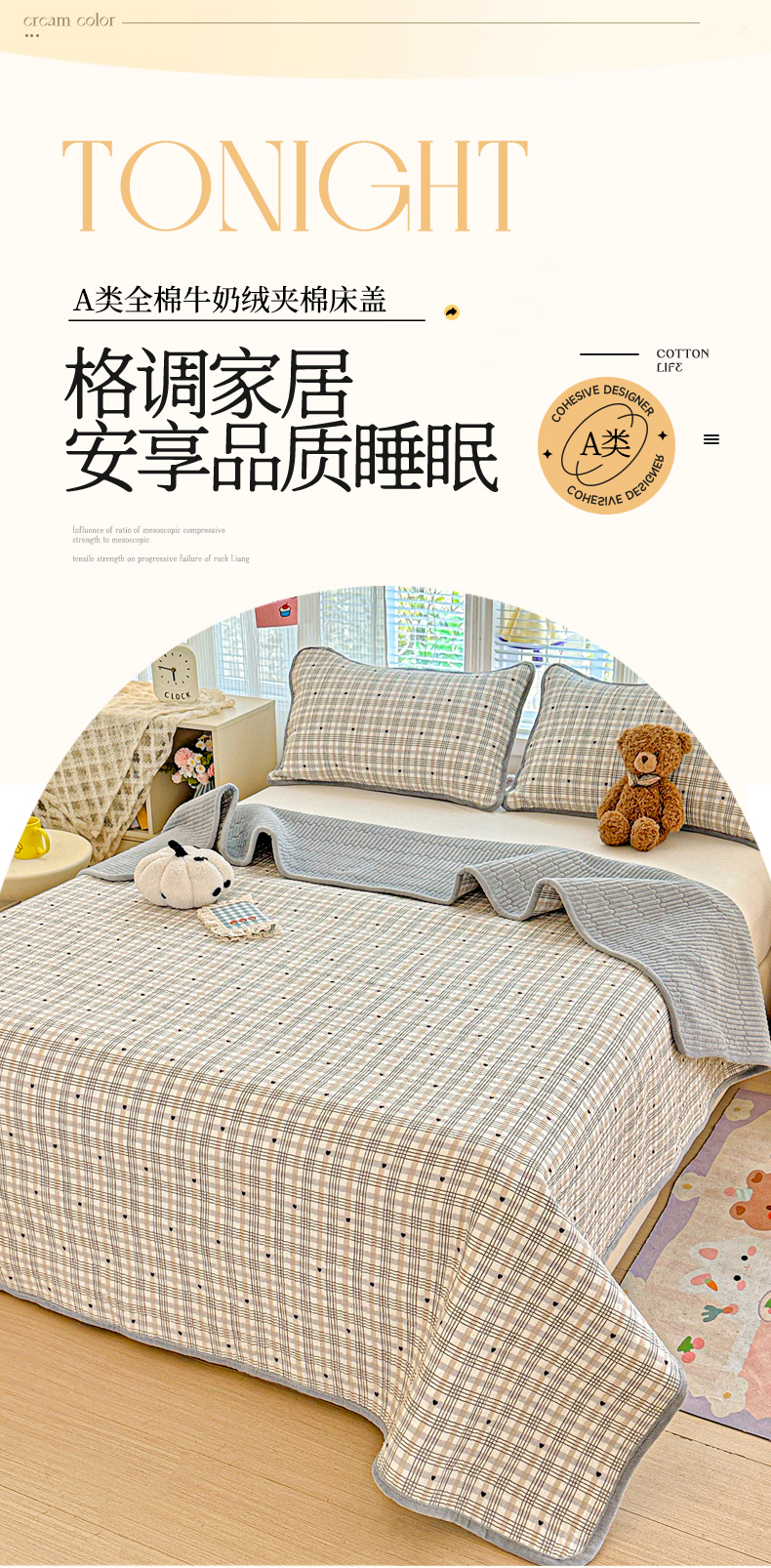 • 91家纺网 家纺一手货源 找家纺 恒尚居 2025新款全棉牛奶绒床盖四季可用纯棉夹棉床单床褥垫三件套-秋冬款系列三 简格调【A纯棉-B牛奶绒】
