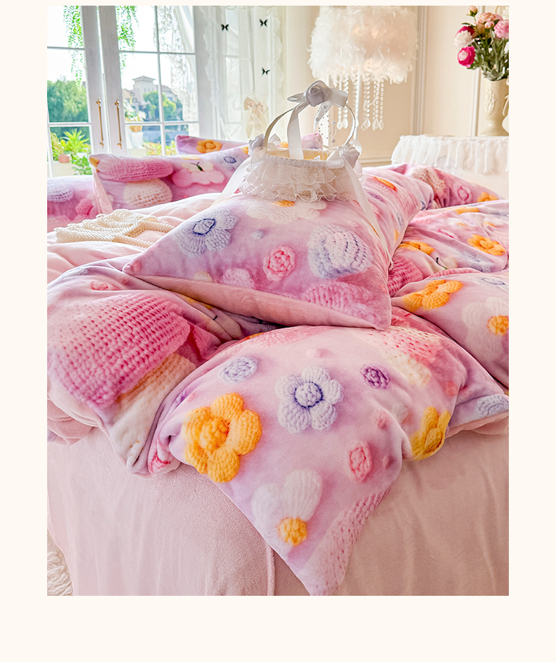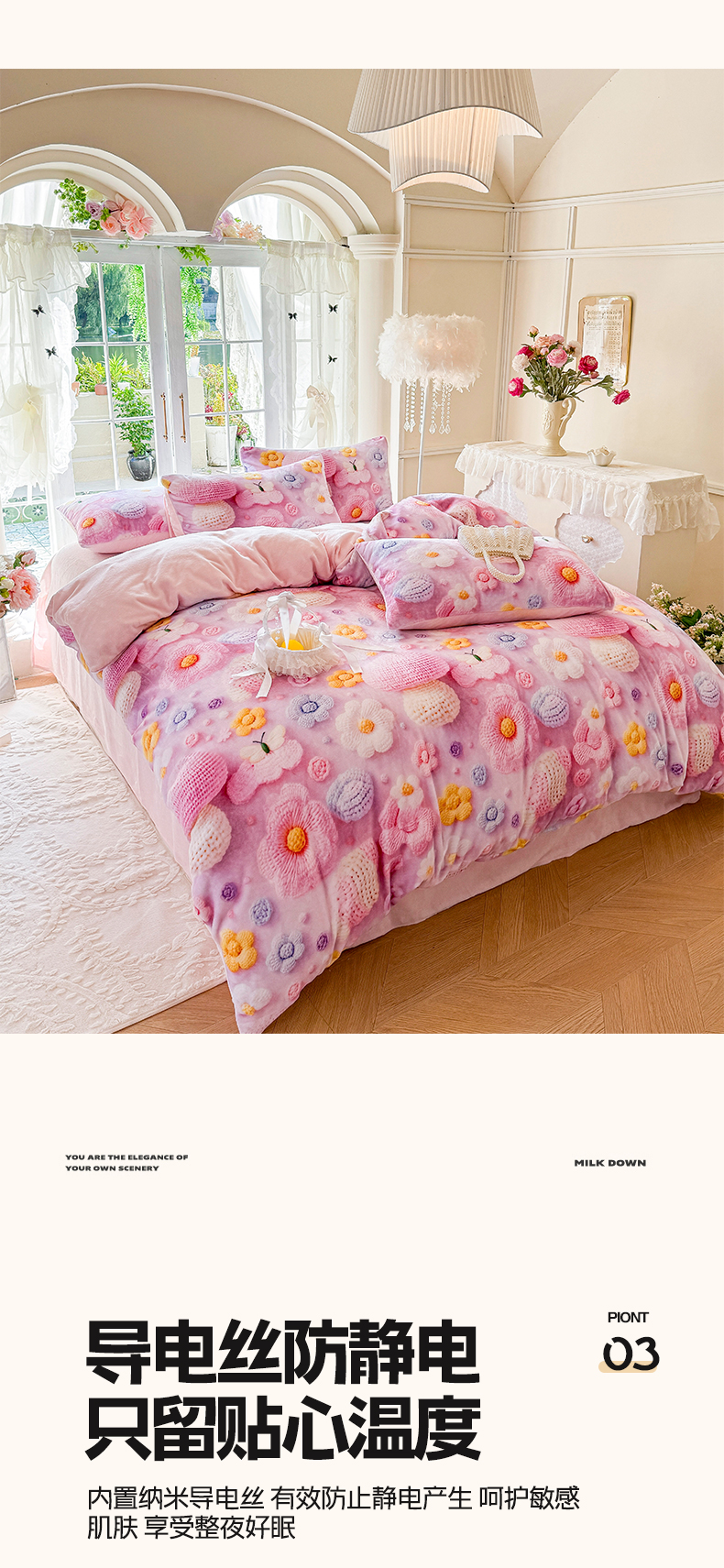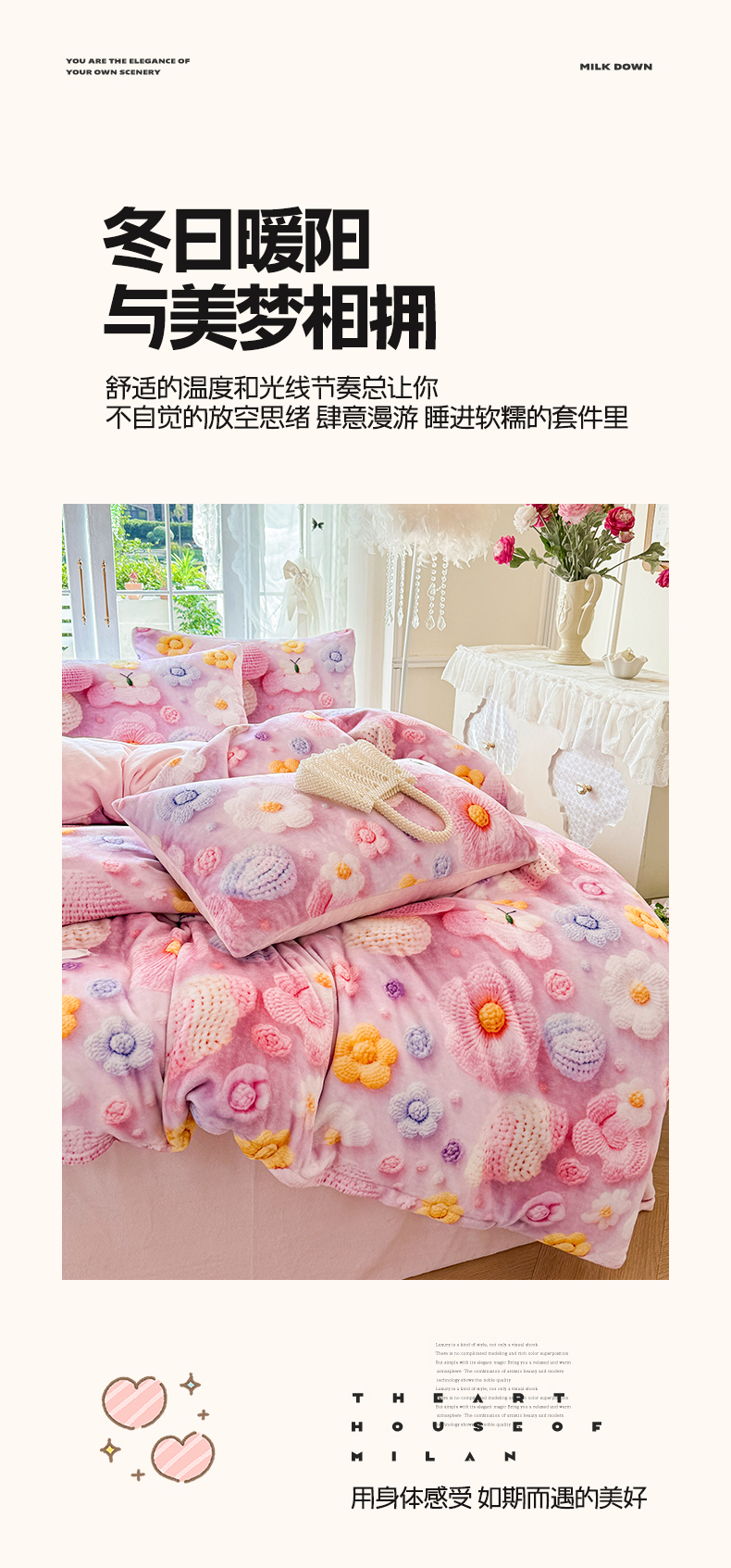 当前位置: 91家纺网 > 商品网购 > 床品套件 > 四件套 > 牛奶绒四件套 > 馨语家居 2025新款直播热款高克重保暖卡通牛奶绒印花四件套 一路生花