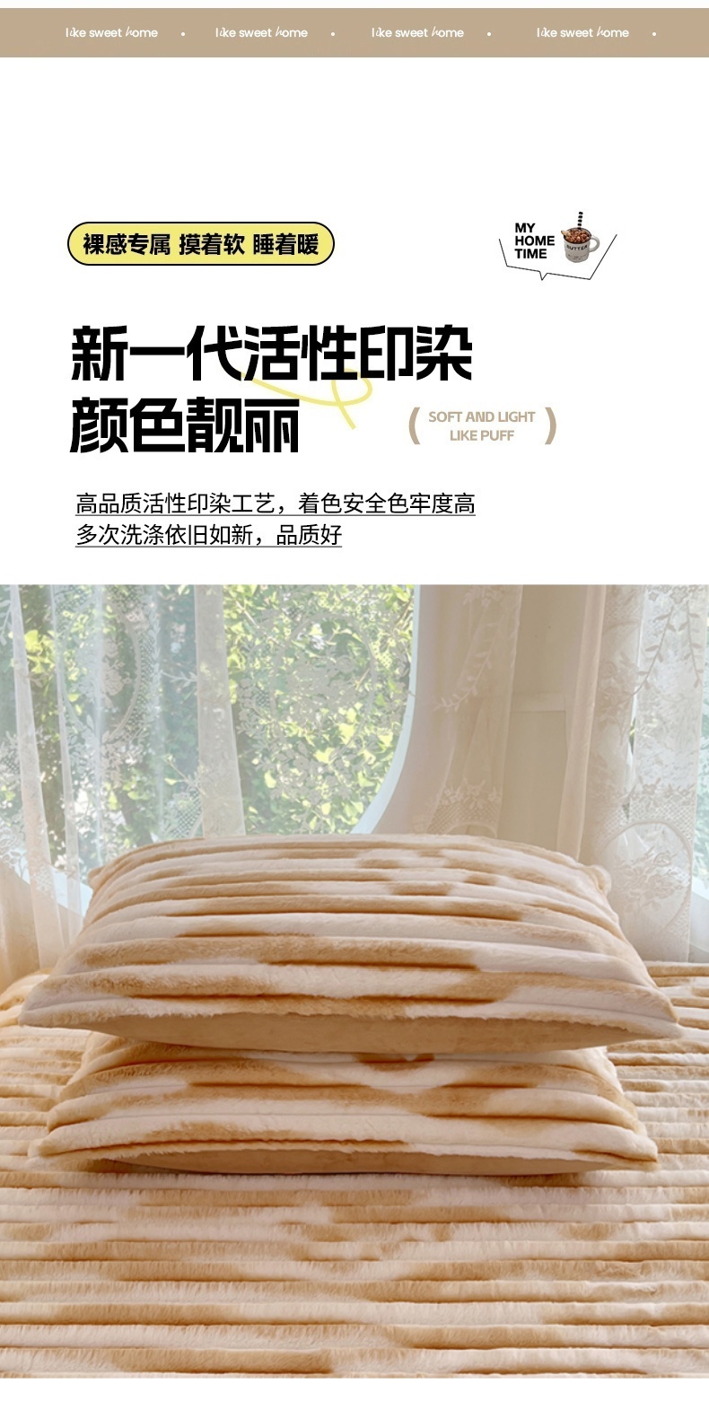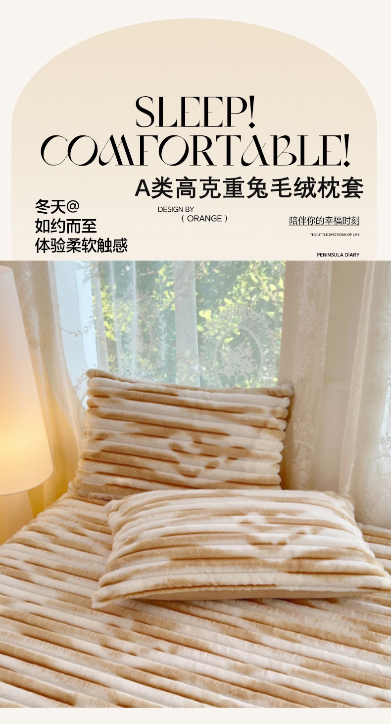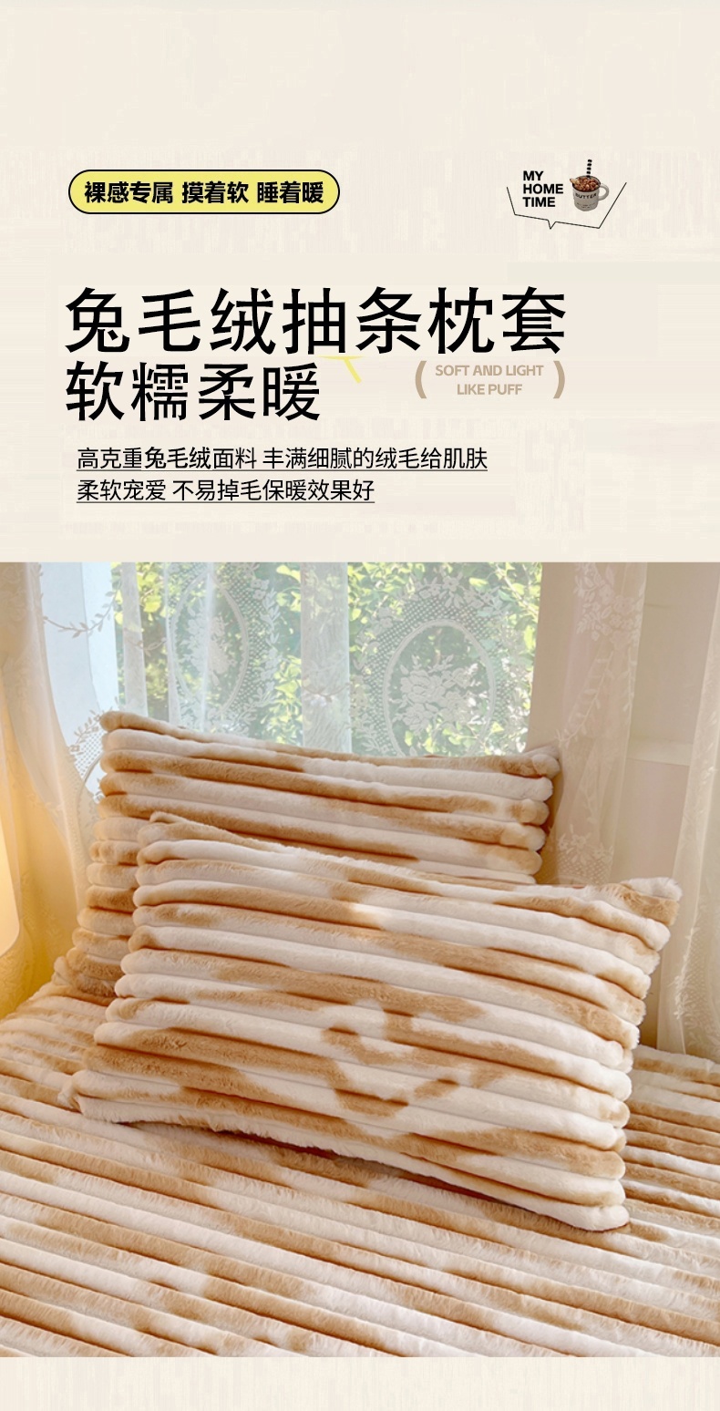 • 91家纺网 家纺一手货源 找家纺 梦舒羽 2025新款兔毛绒枕套宿舍枕芯套单人48x74cm法兰绒法莱绒枕头套-抽条 兔毛绒抽条-梦幻奶咖