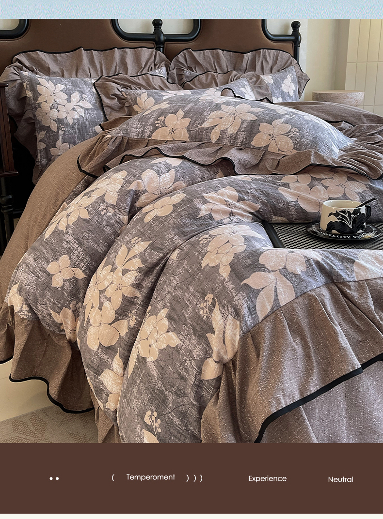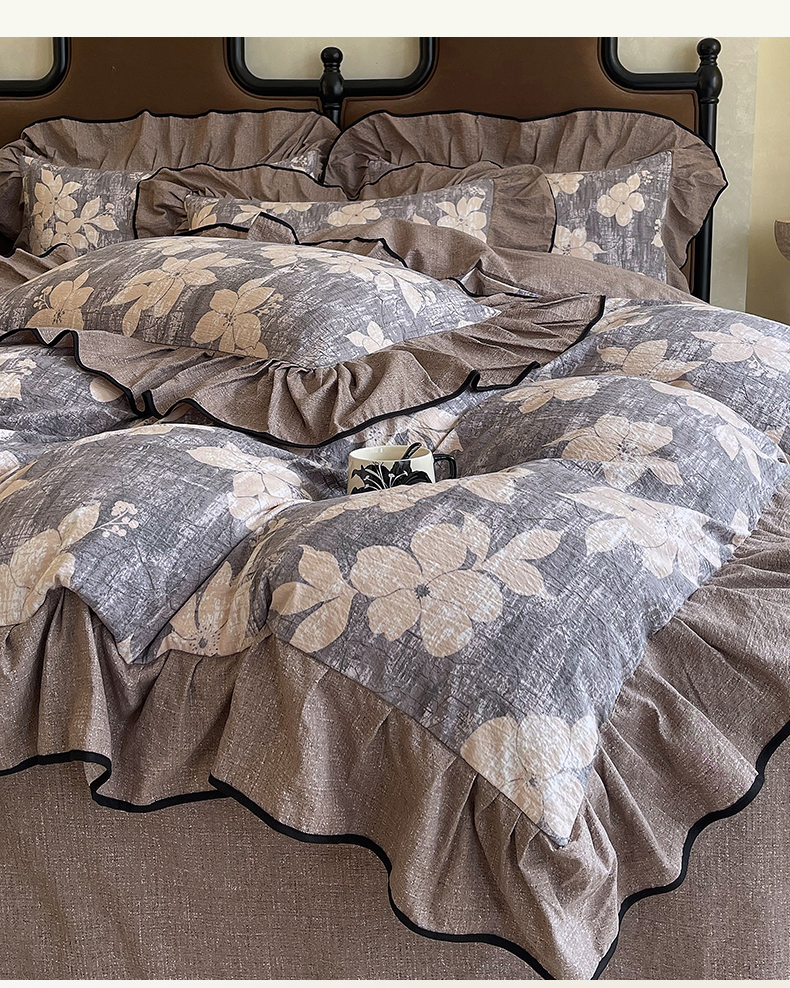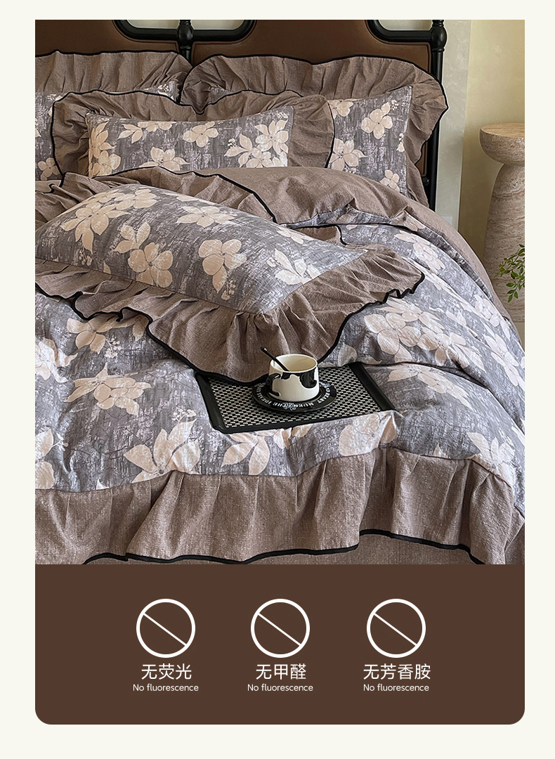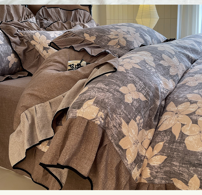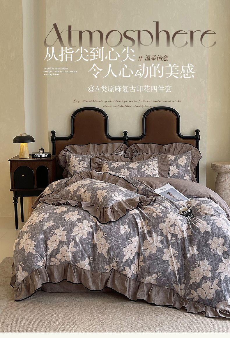 丝芙妮家居(原乐视家纺) 2025新款A类原麻复合印花花边四件套 漫步花庭