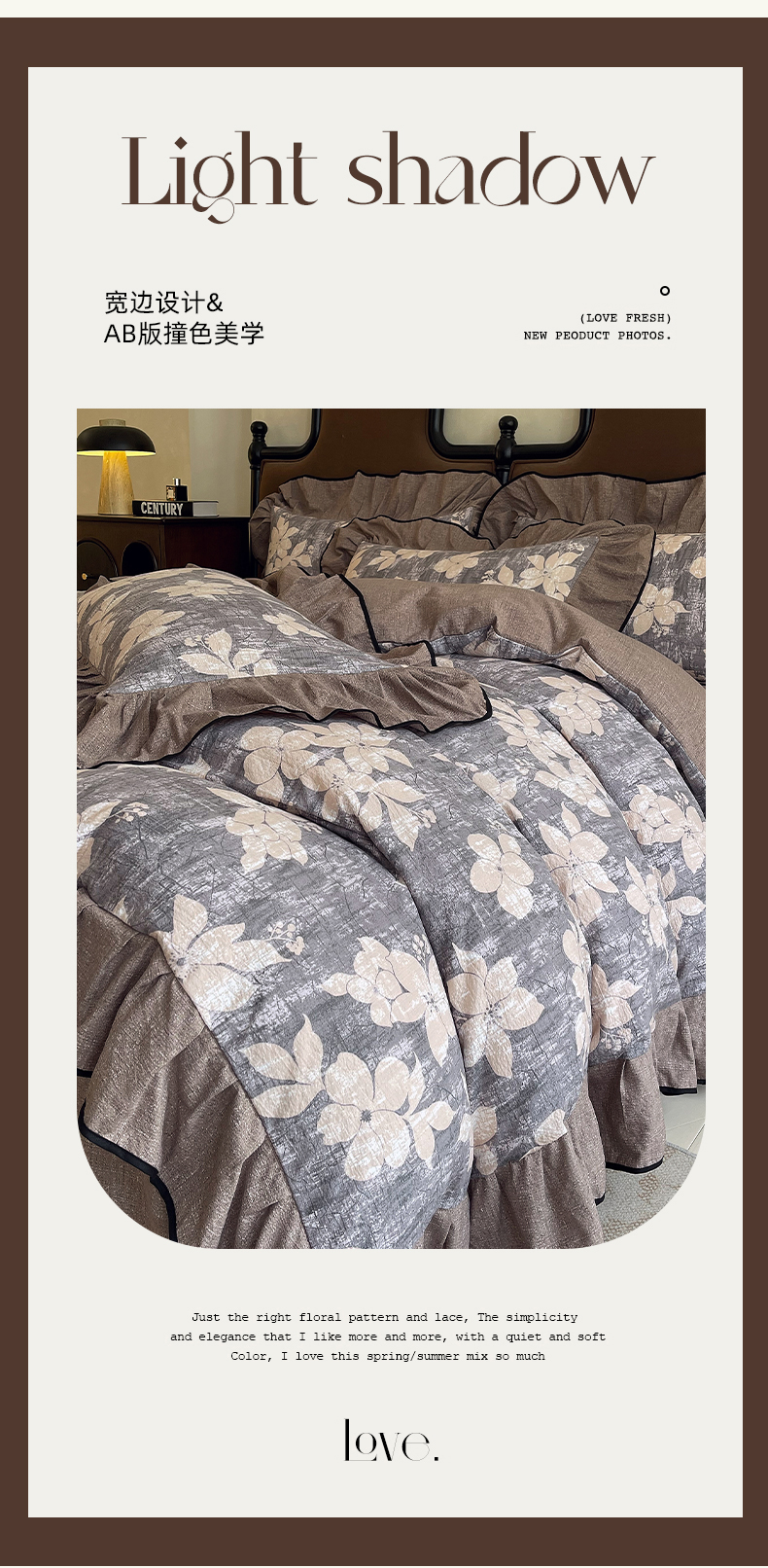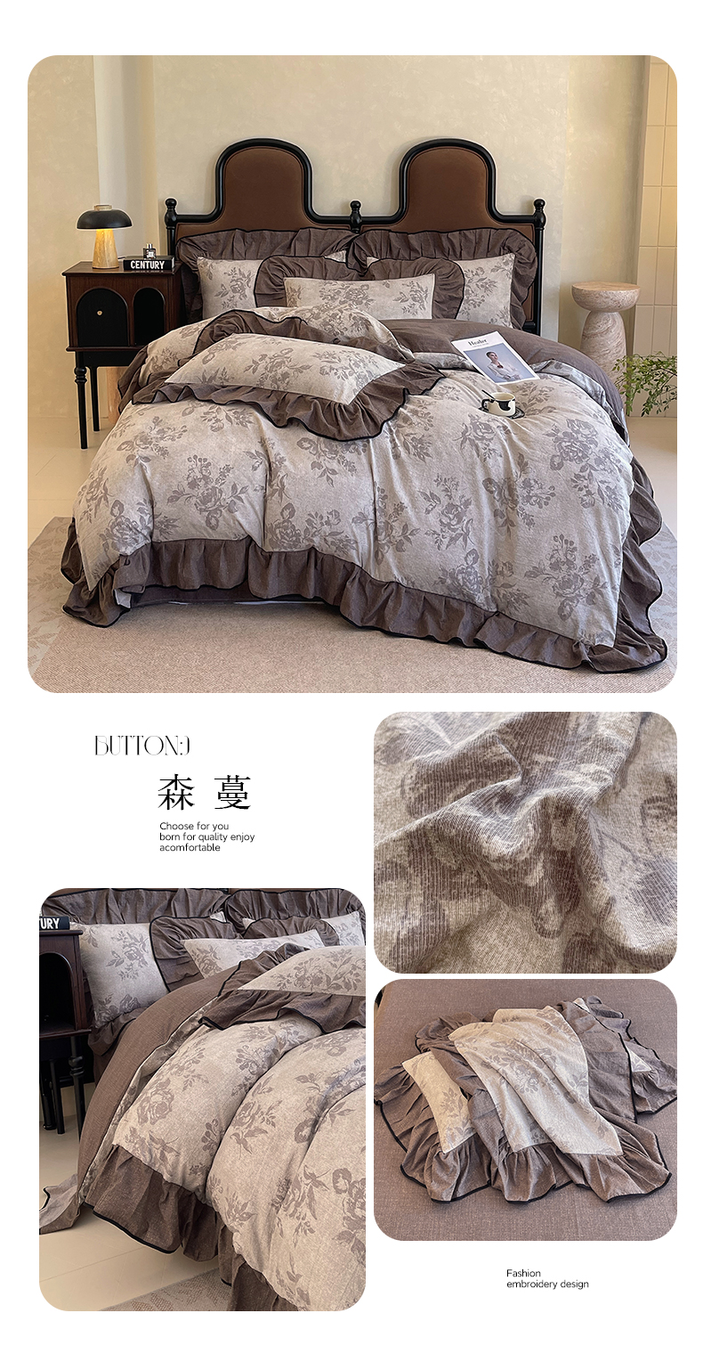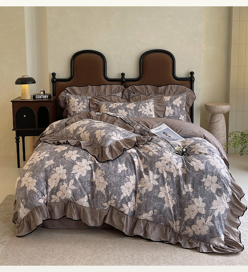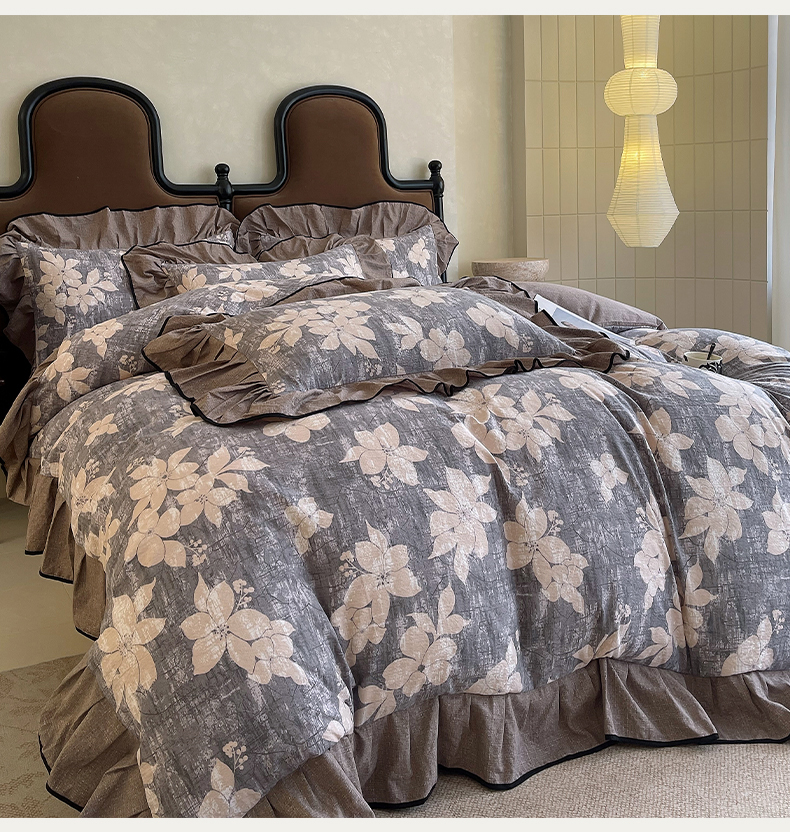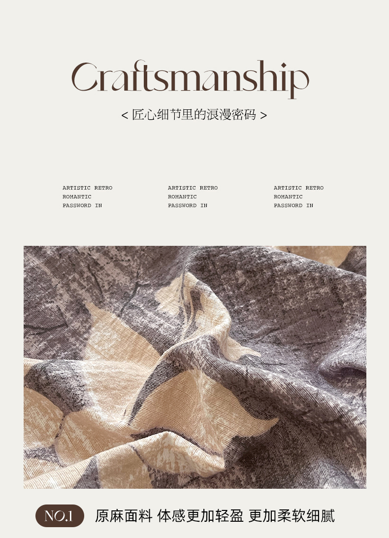 丝芙妮家居(原乐视家纺) 2025新款A类原麻复合印花花边四件套 漫步花庭