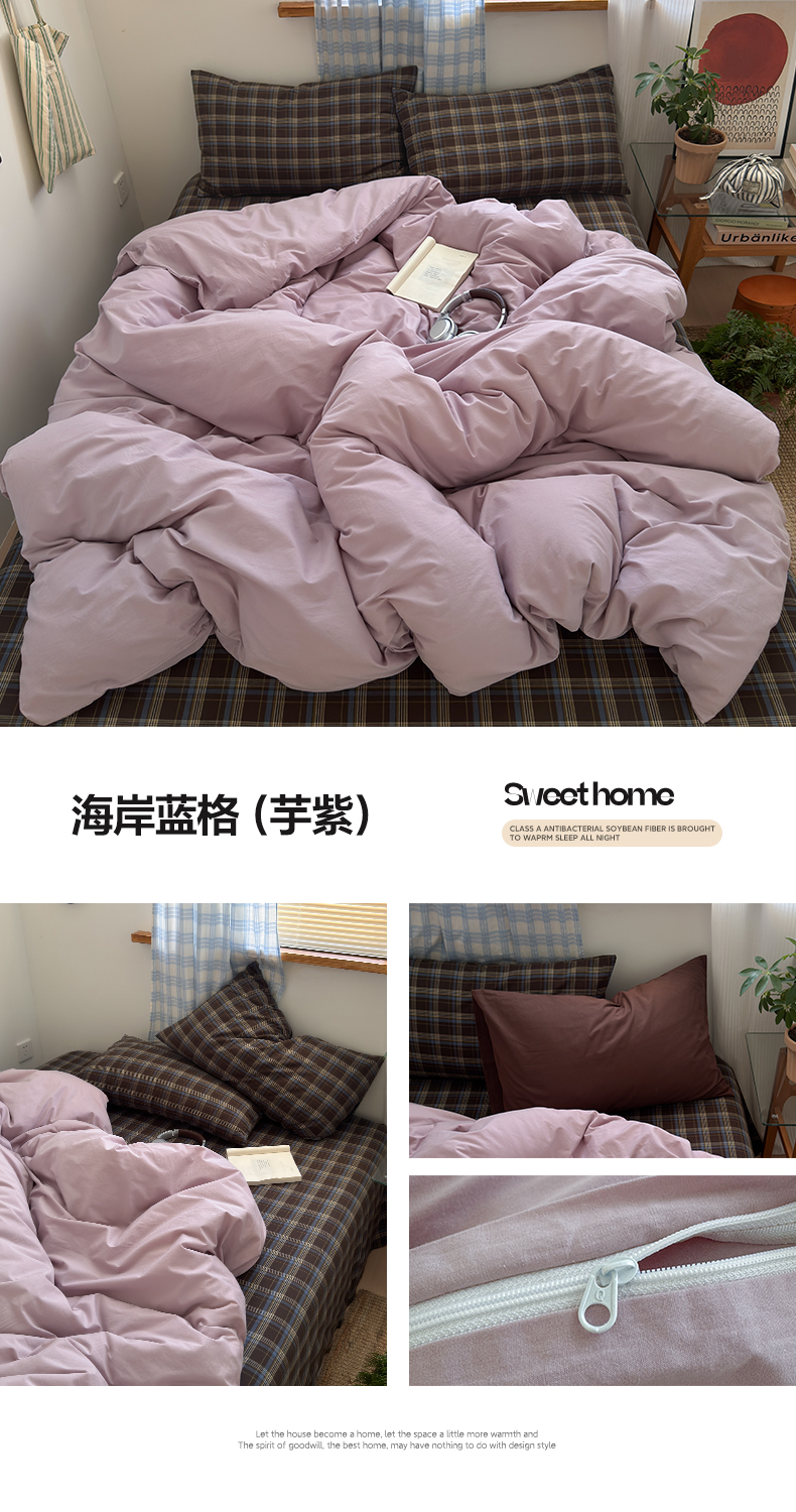 当前位置: 91家纺网 > 商品网购 > 床品套件 > 四件套 > 其它四件套 > 玖弘家居 2025新款纯色被套格子单混搭四件套 海岸蓝格-橄榄绿(枕套巧克力棕)
