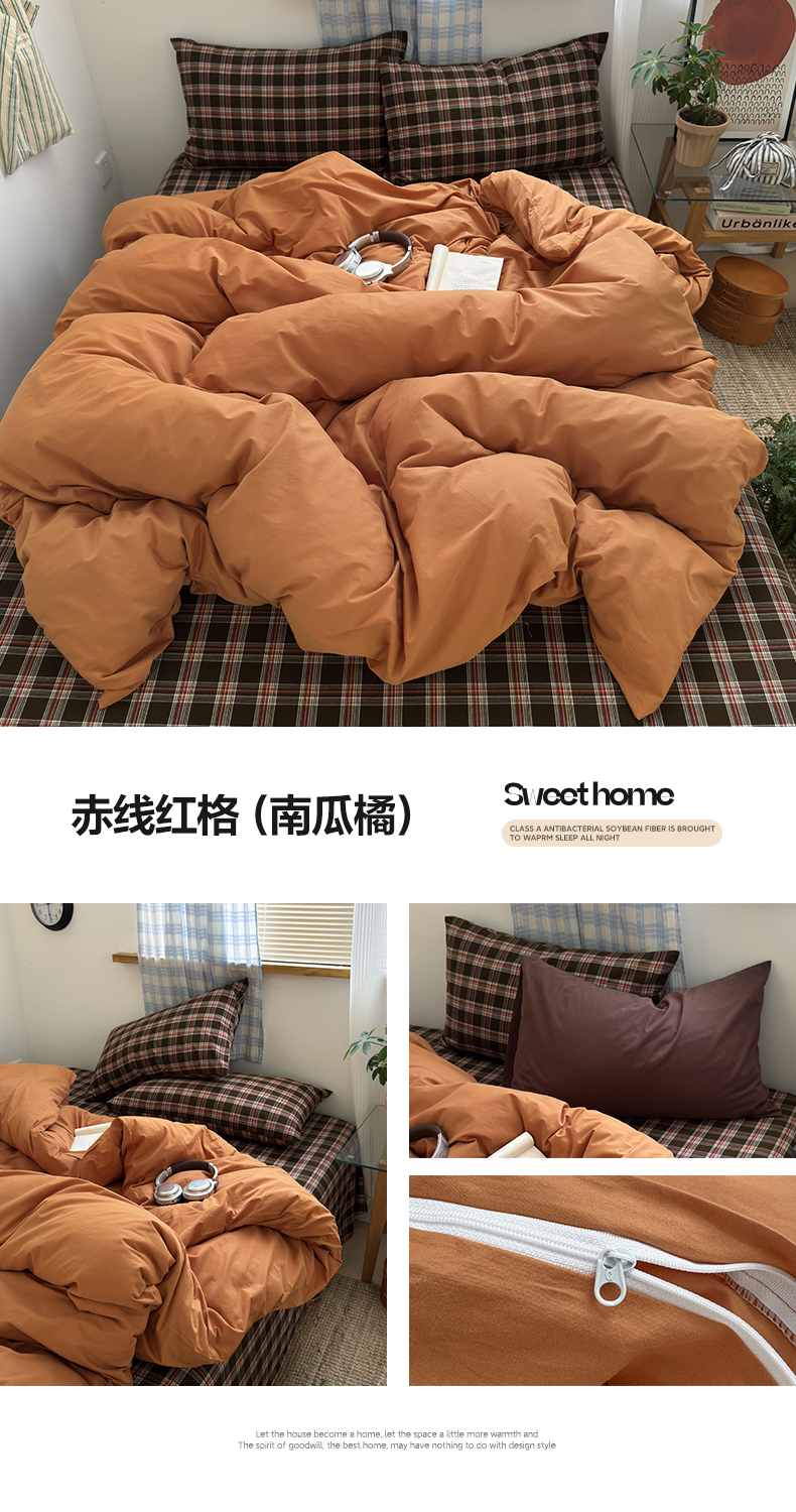 当前位置: 91家纺网 > 商品网购 > 床品套件 > 四件套 > 其它四件套 > 玖弘家居 2025新款纯色被套格子单混搭四件套 赤线红格-南瓜橘(枕套格子+巧克力棕)