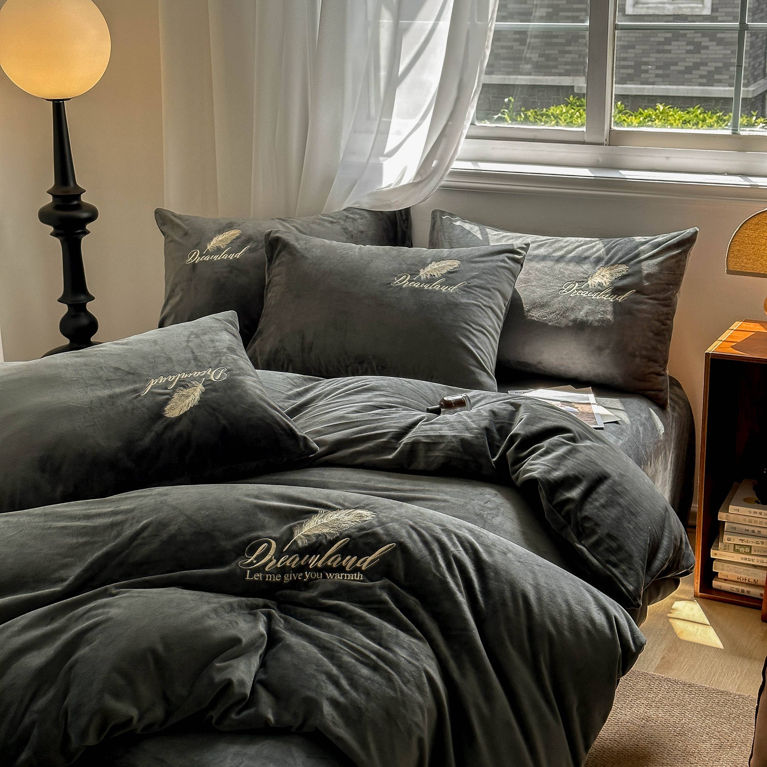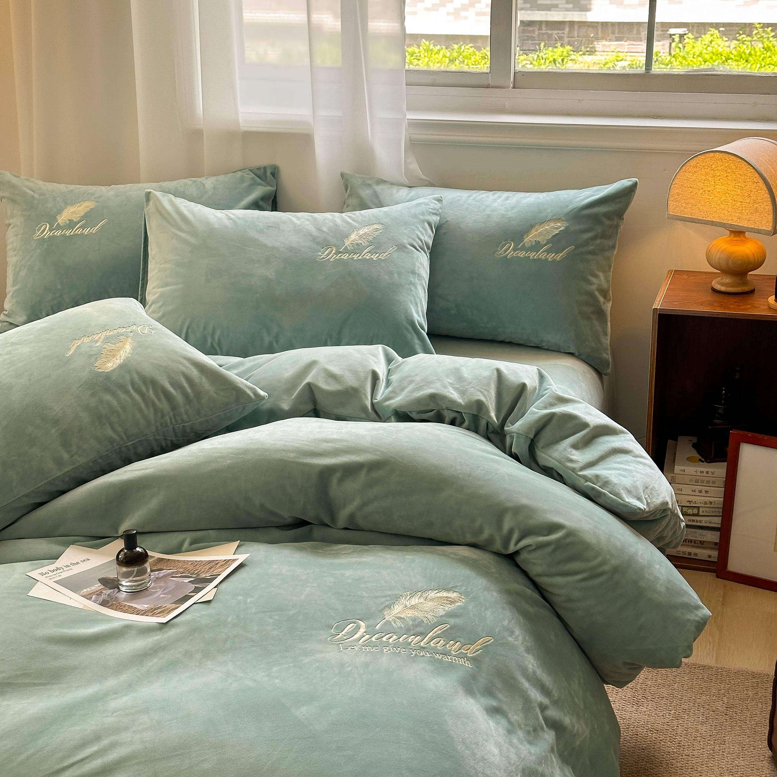 当前位置: 91家纺网 > 商品网购 > 床品套件 > 四件套 > 牛奶绒四件套 > 爱彼家纺 2025新款牛奶绒刺绣四件套--羽毛系列-风格一 羽毛-宝蓝