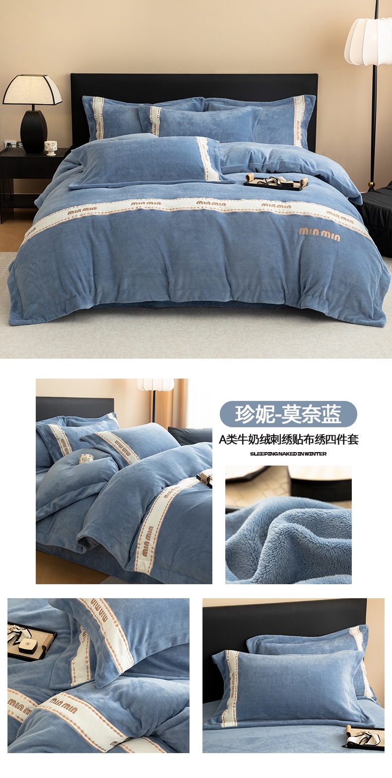 商品名称:懒猫家纺 2025新款刺绣贴布绣牛奶绒四件套-珍妮 珍妮-焦糖棕