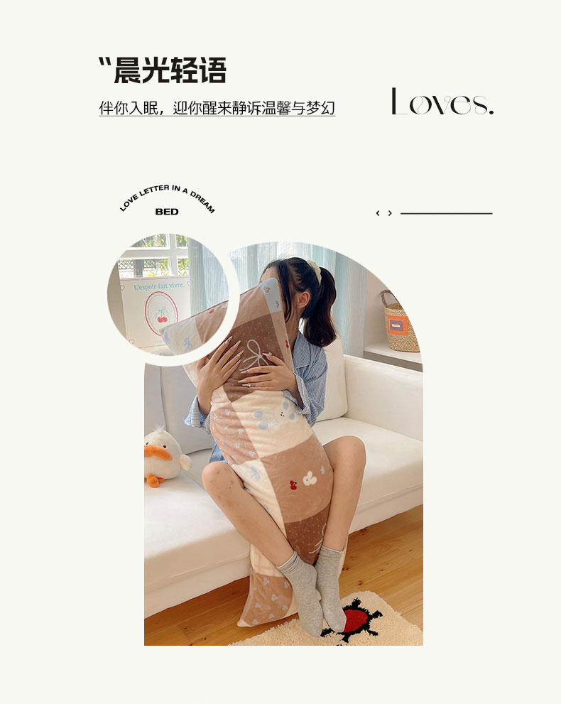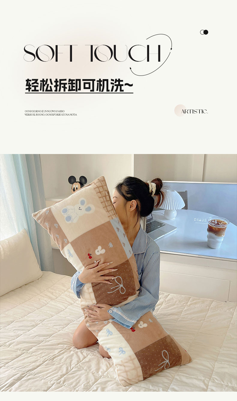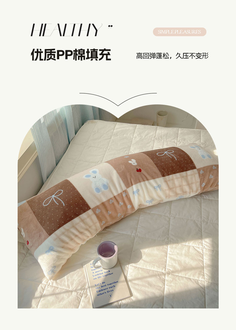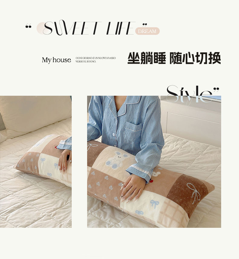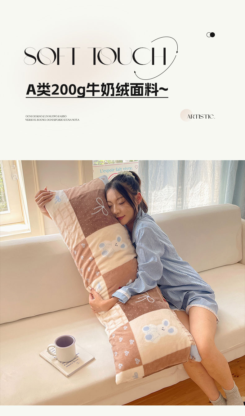 六巷胡同 2025新款INS博主可爱风A类200g牛奶绒长条大抱枕 抱枕-格子美拉兔