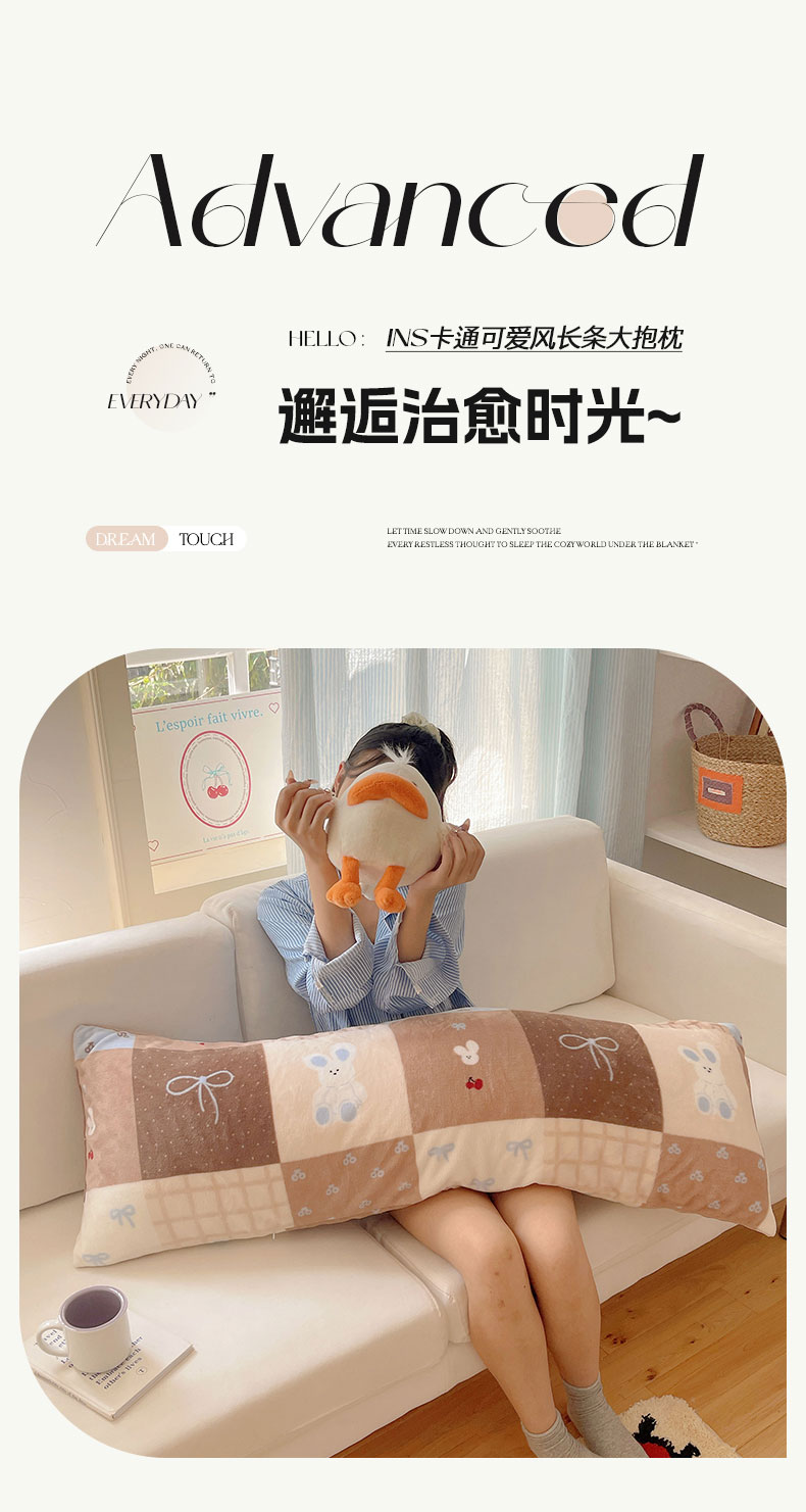 商品名称:六巷胡同 2025新款INS博主可爱风A类200g牛奶绒长条大抱枕 抱枕-格子美拉兔