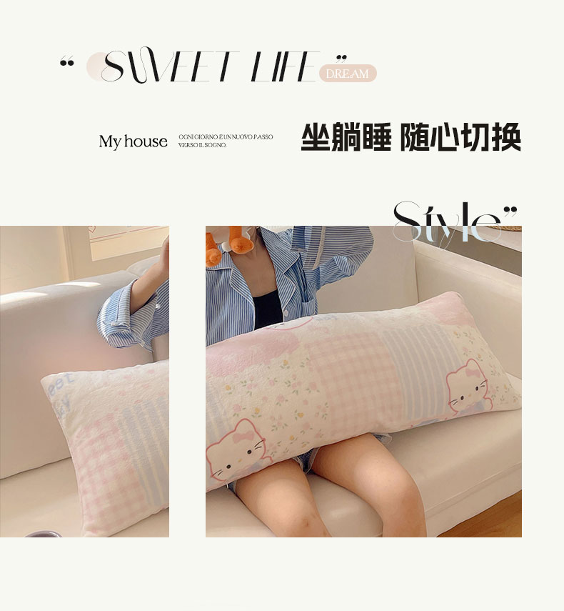 商品名称:六巷胡同 2025新款INS博主可爱风A类200g牛奶绒长条大抱枕 抱枕-软萌碎花猫
