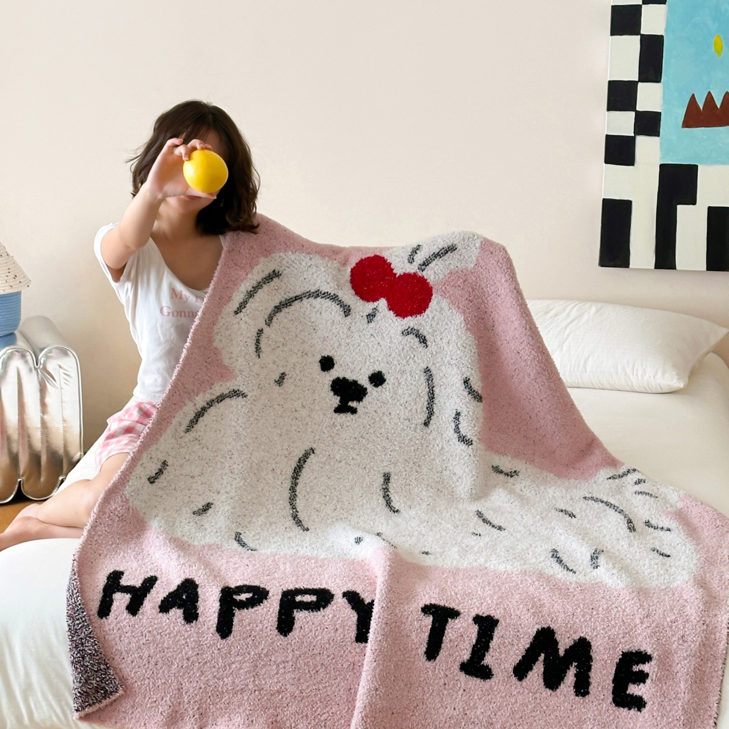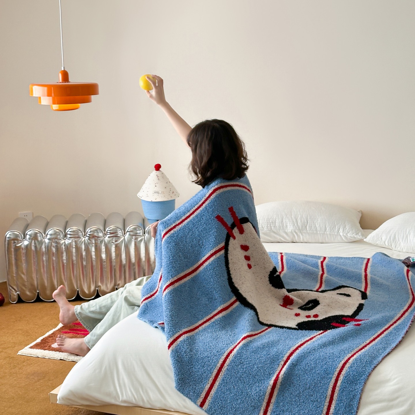 觅糖家纺 2025新款卡通半边绒毛毯毯子系列 潦草小狗