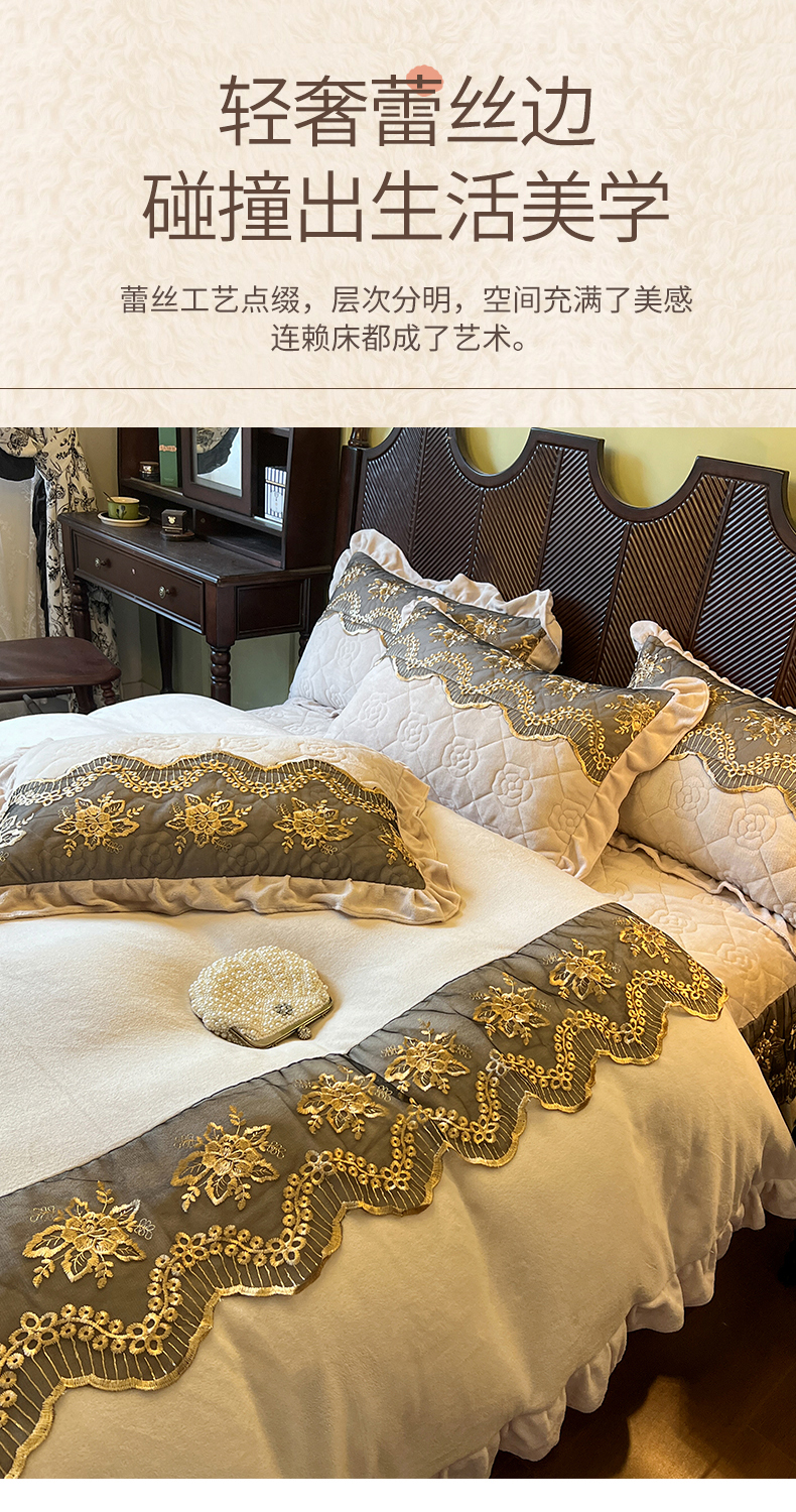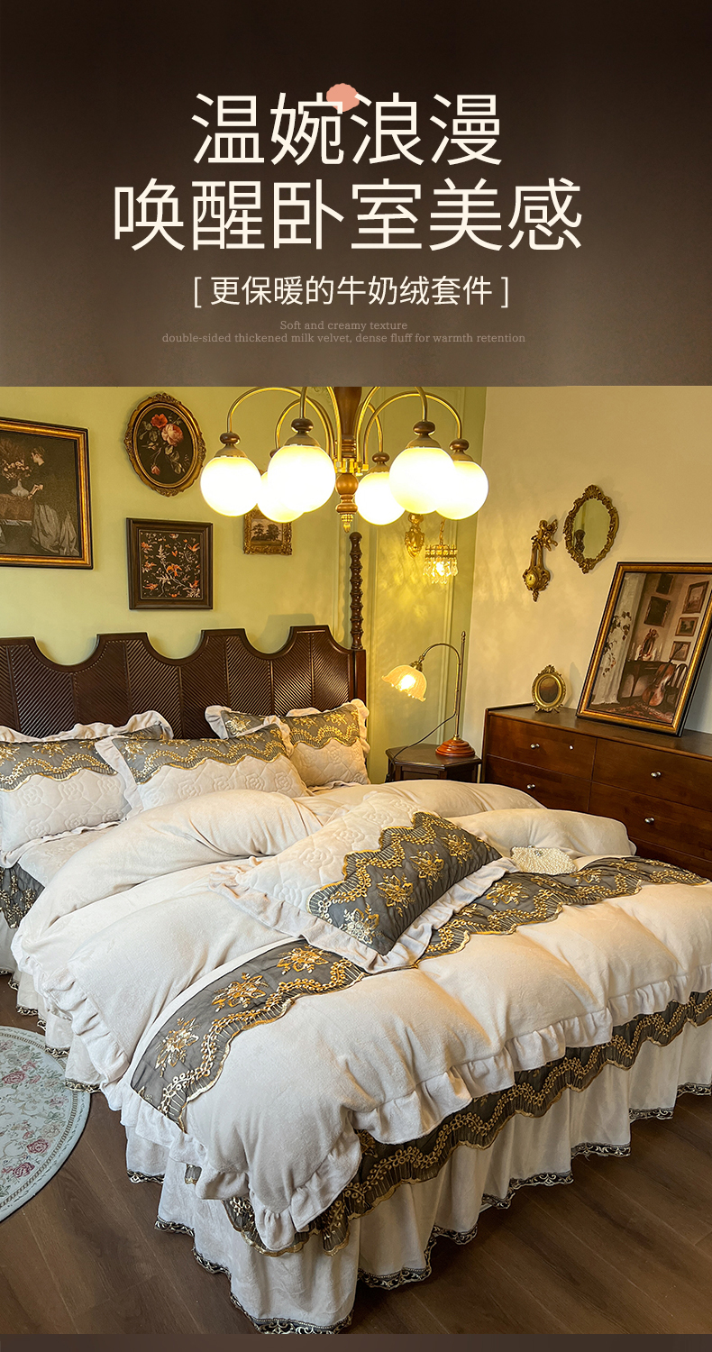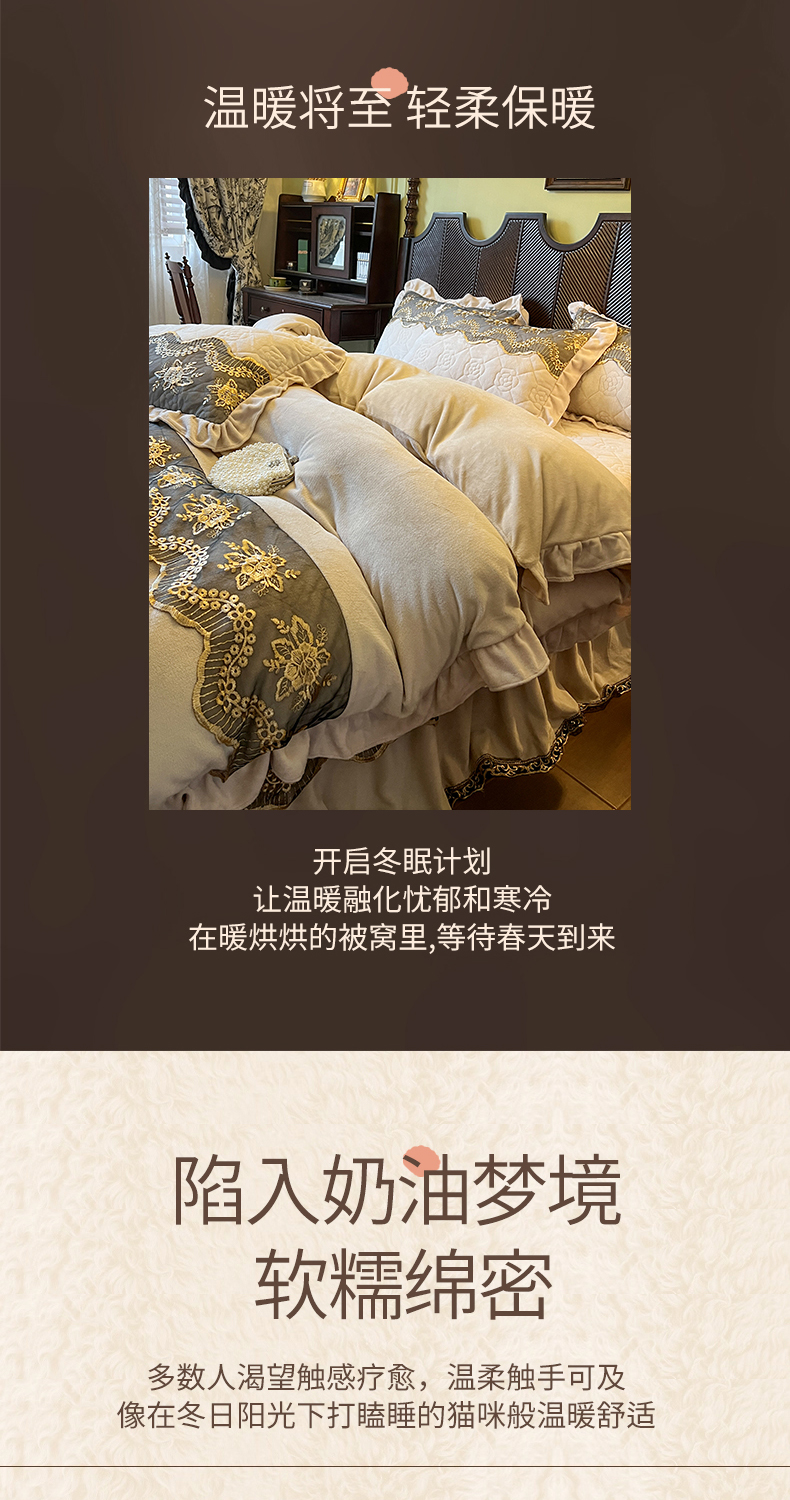 当前位置: 91家纺网 > 商品网购 > 床品套件 > 四件套 > 牛奶绒四件套 > 网红馆(ck家纺) 2025新款高克重牛奶绒床裙四件套-卡妮娜系列 卡妮娜-卡其