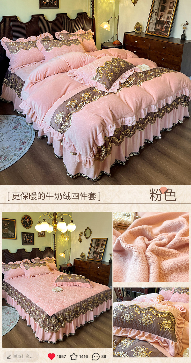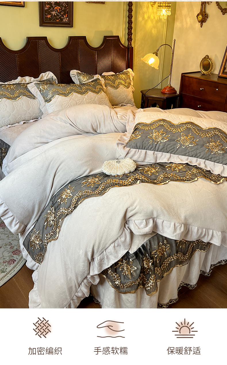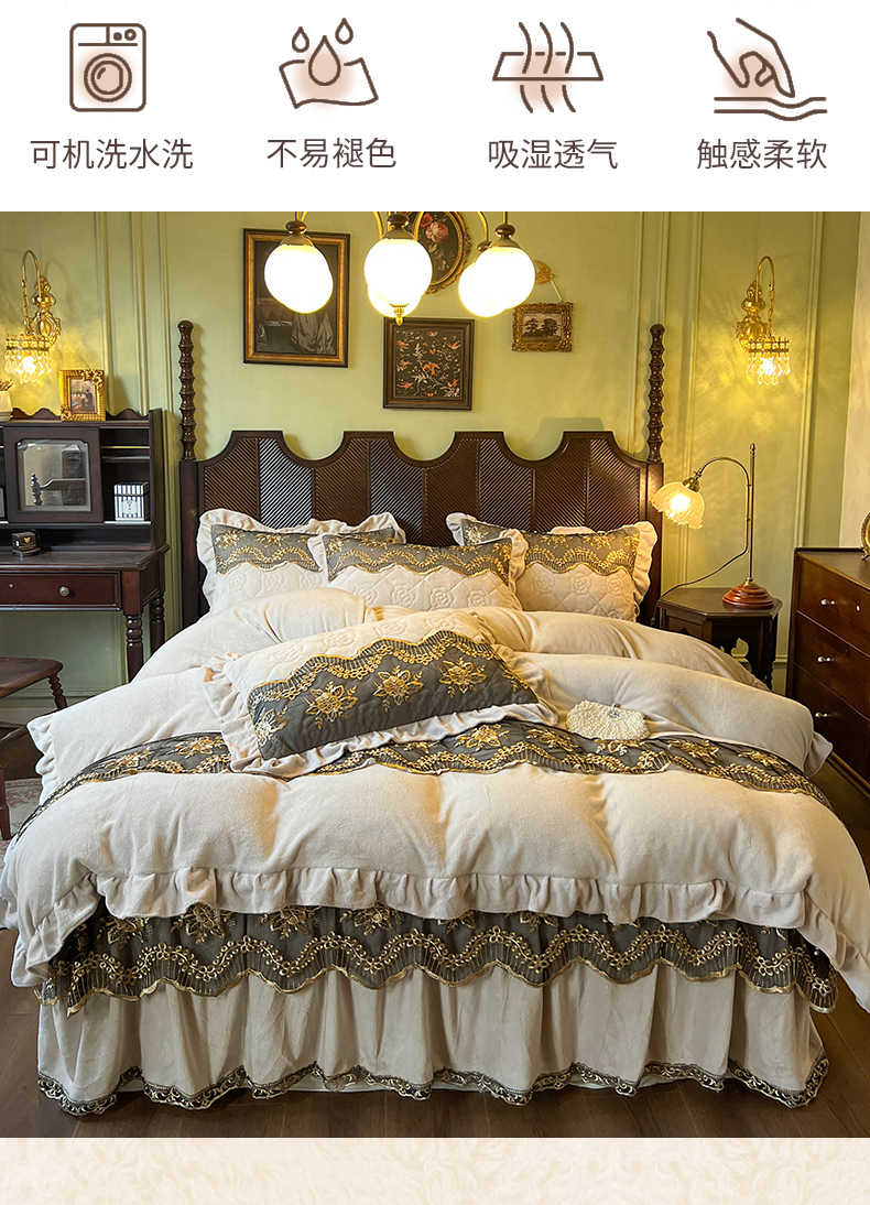 当前位置: 91家纺网 > 商品网购 > 床品套件 > 四件套 > 牛奶绒四件套 > 网红馆(ck家纺) 2025新款高克重牛奶绒床裙四件套-卡妮娜系列 卡妮娜-卡其