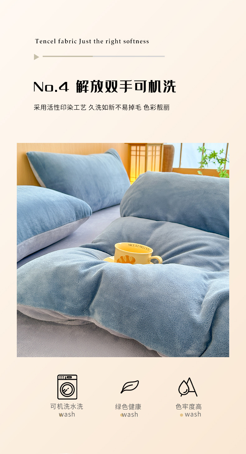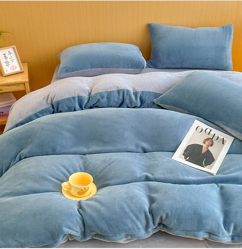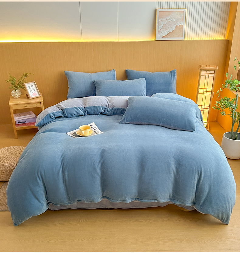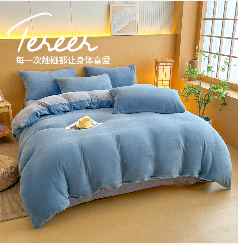 商品名称:小懒猪 2025新款220克A类牛奶绒纯色双拼四件套(提供买家秀) 蓝灰