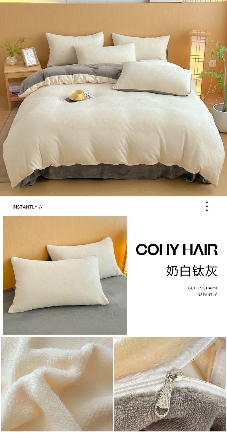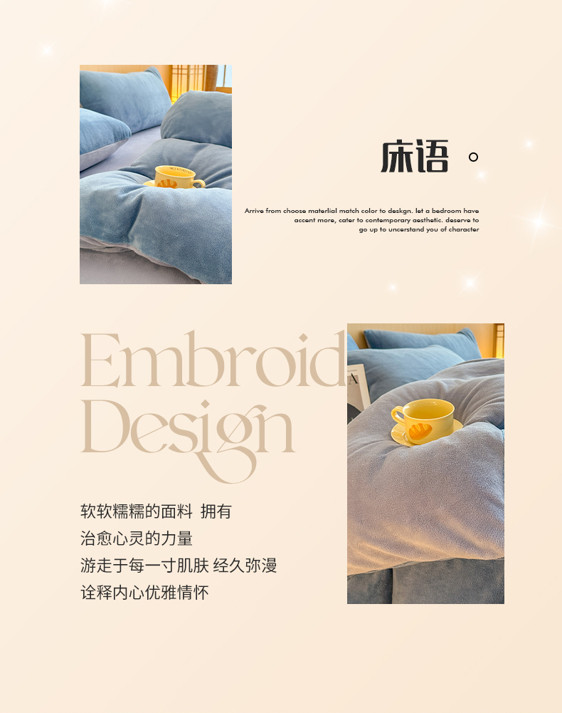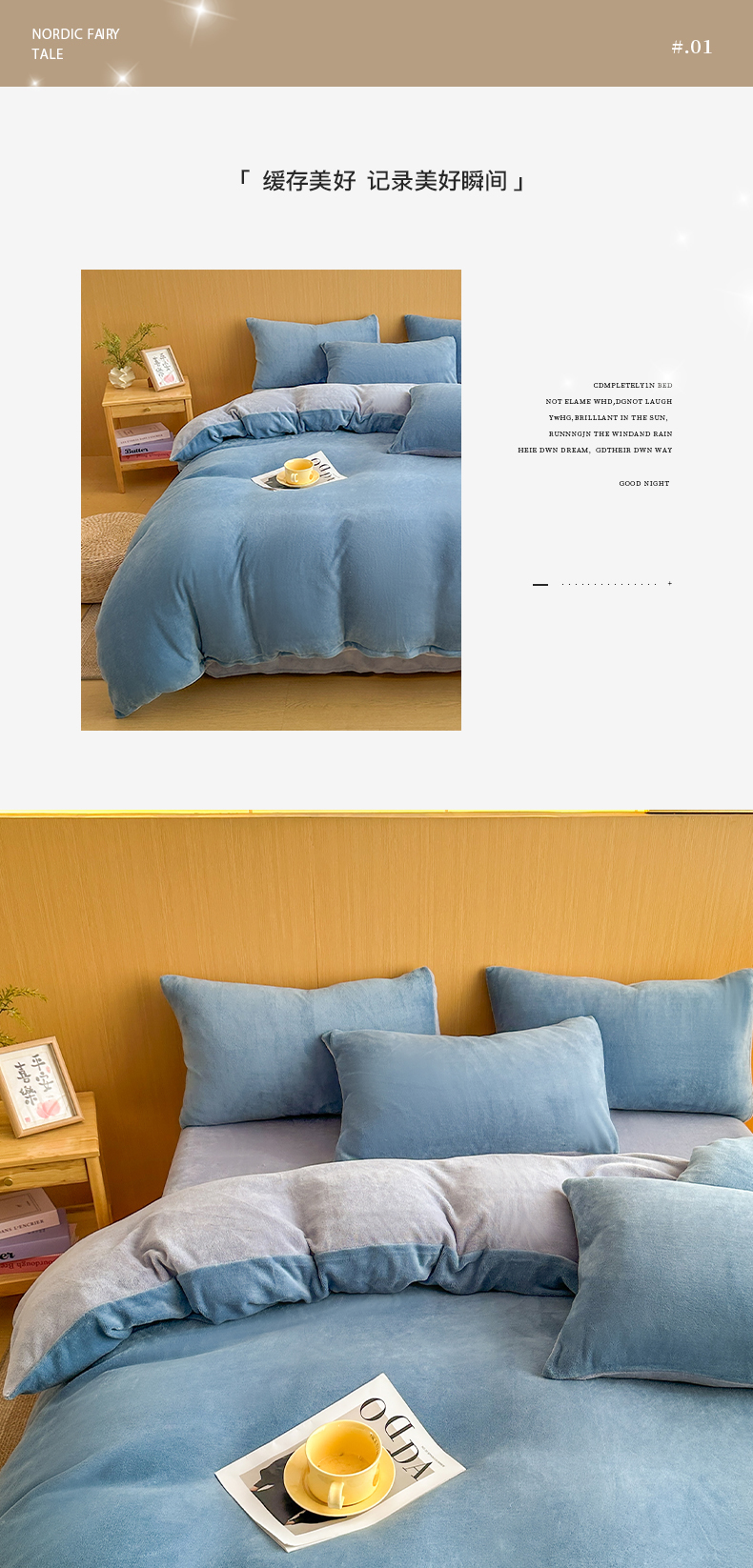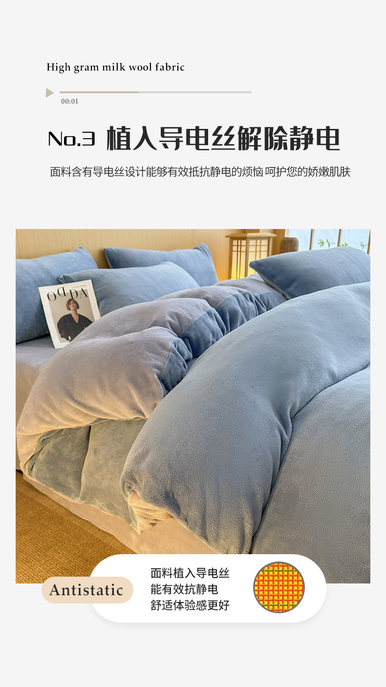 商品名称:小懒猪 2025新款220克A类牛奶绒纯色双拼四件套(提供买家秀) 蓝灰