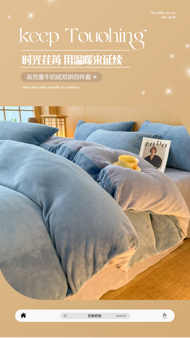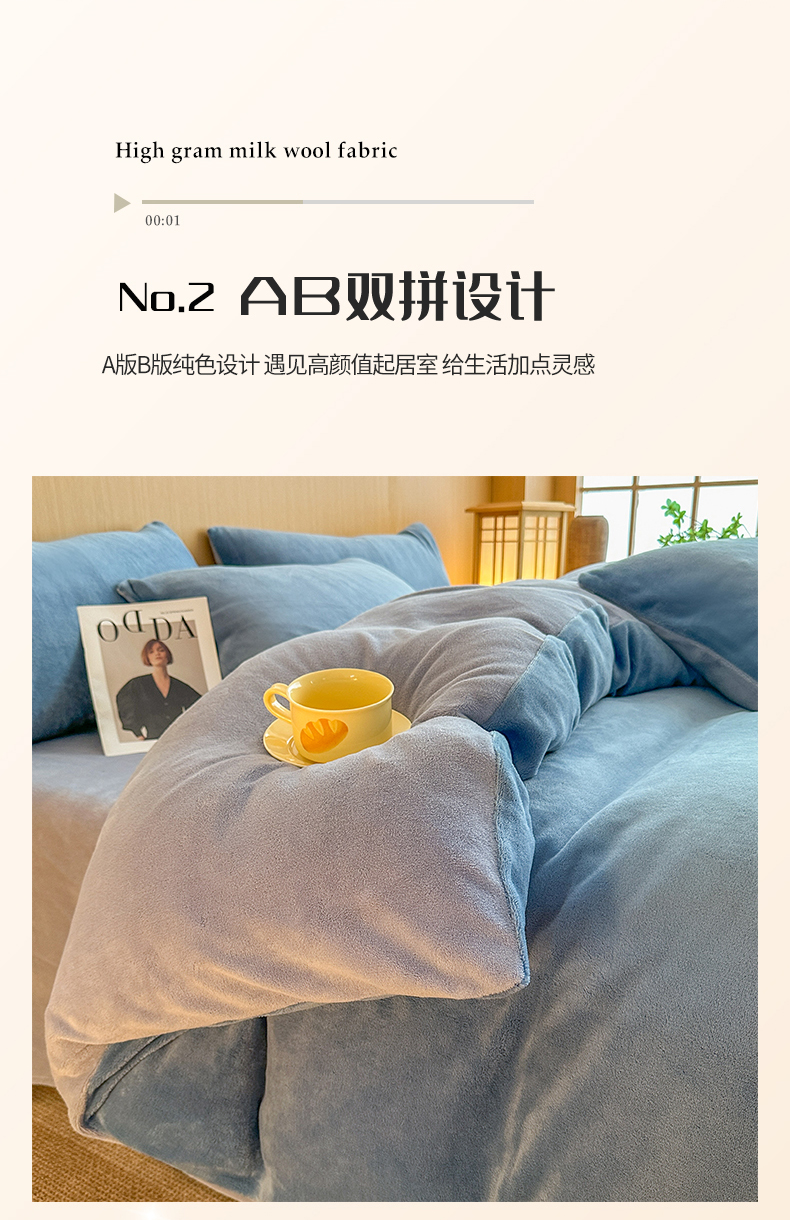 小懒猪 2025新款220克A类牛奶绒纯色双拼四件套(提供买家秀) 蓝灰