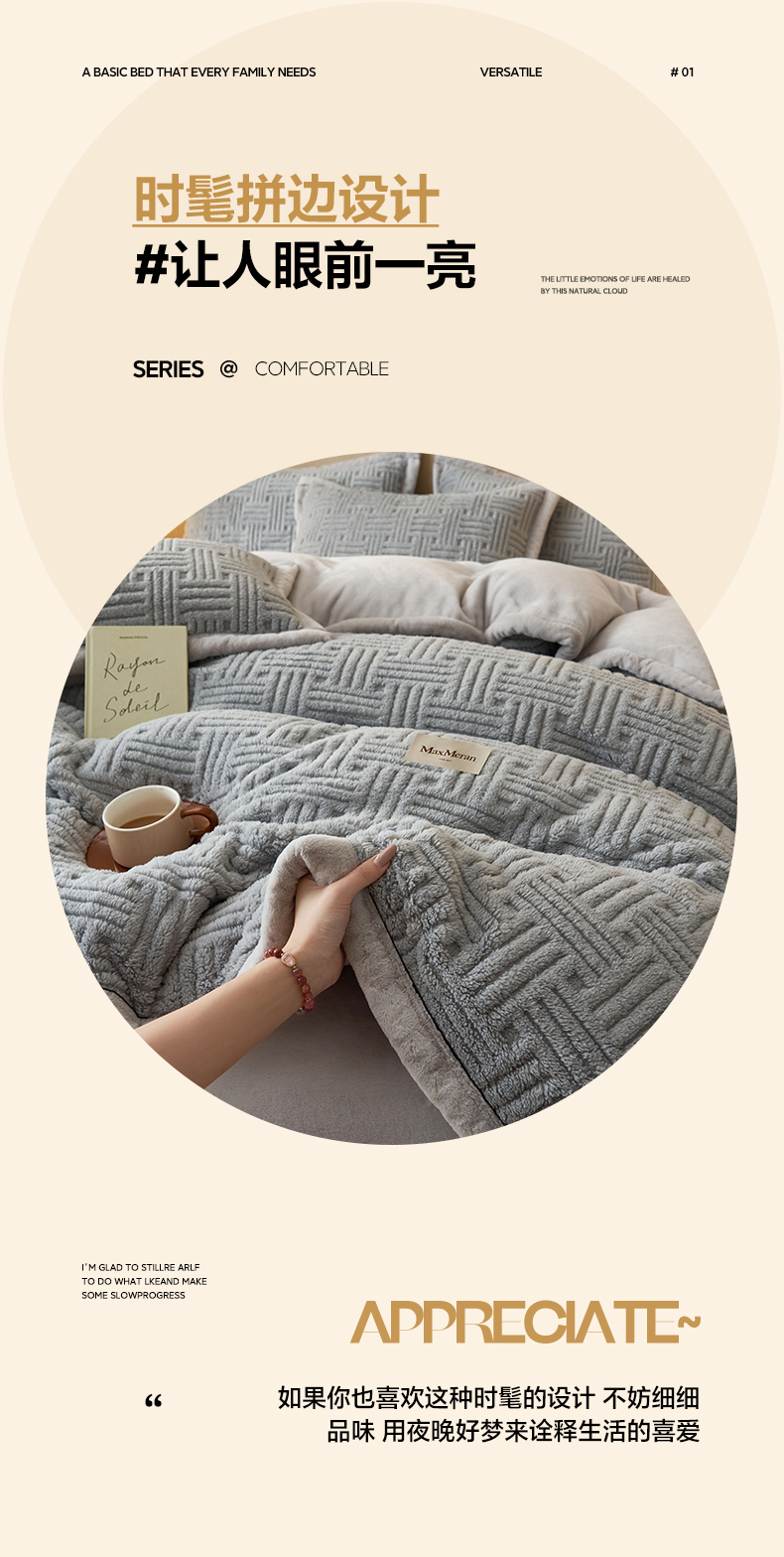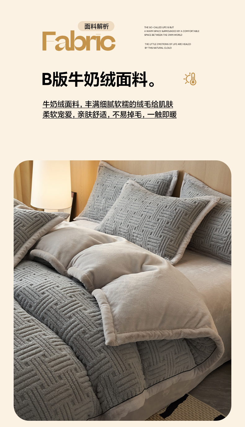 当前位置: 91家纺网 > 商品网购 > 床品套件 > 四件套 > 牛奶绒四件套 > 晨曦家纺 2025新款230克加厚保暖塔芙绒牛奶绒四件套法兰绒 简爱-暖绿