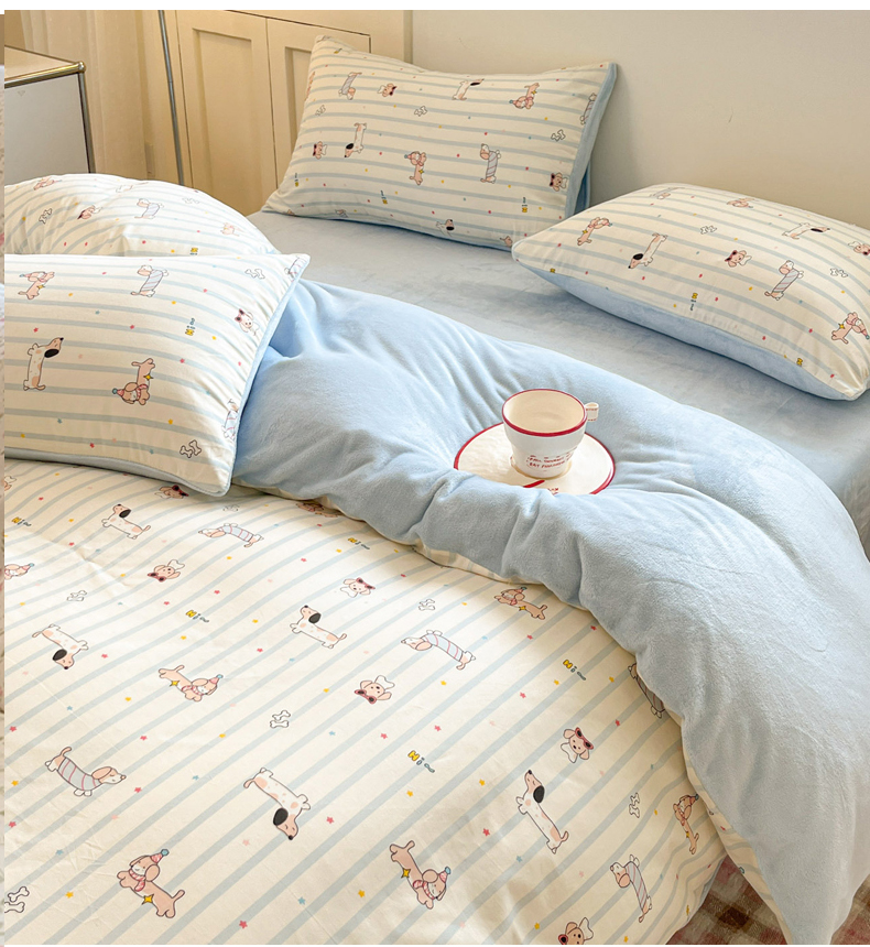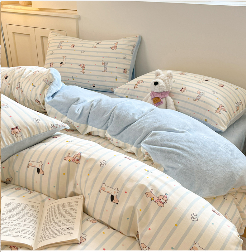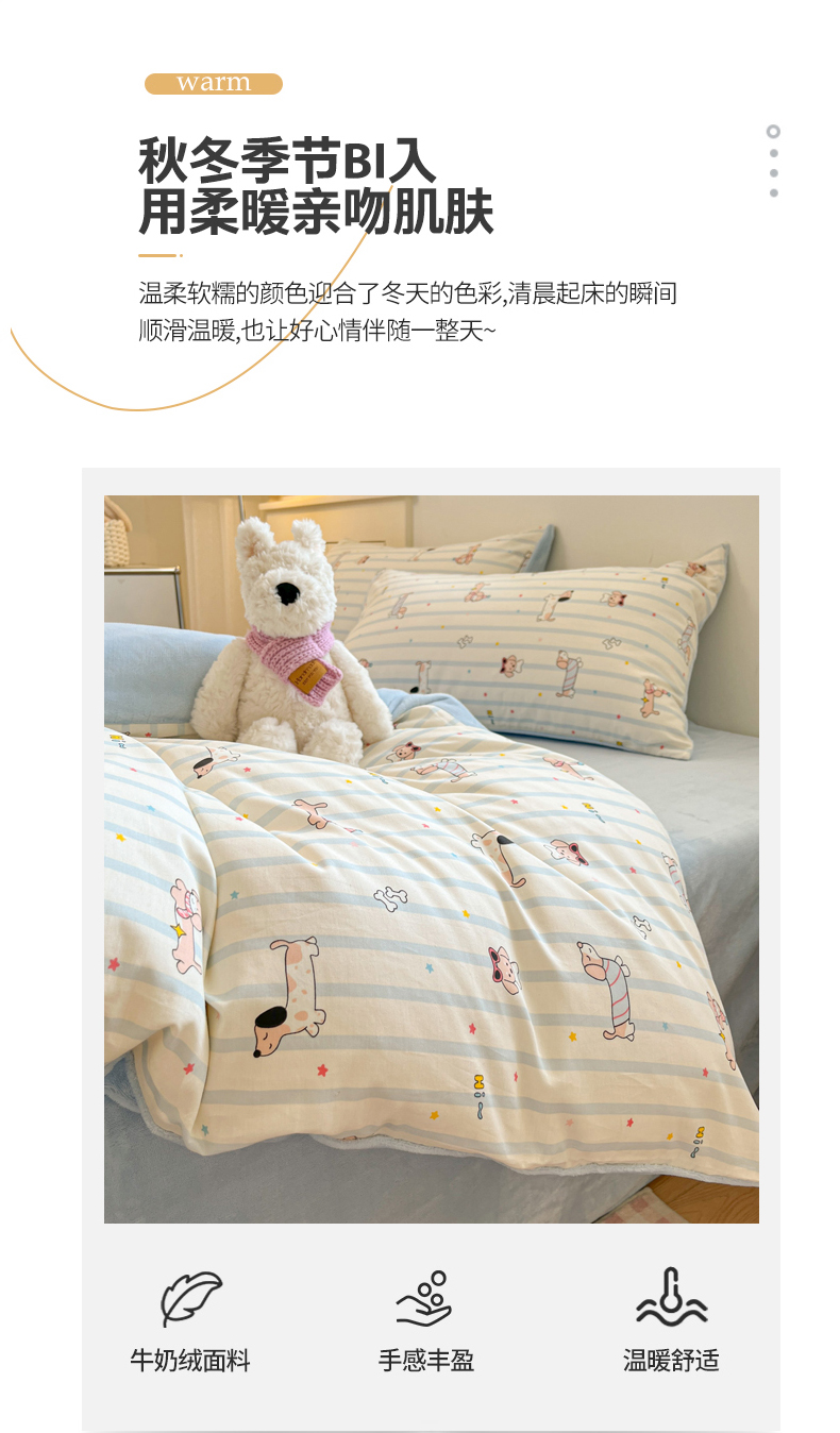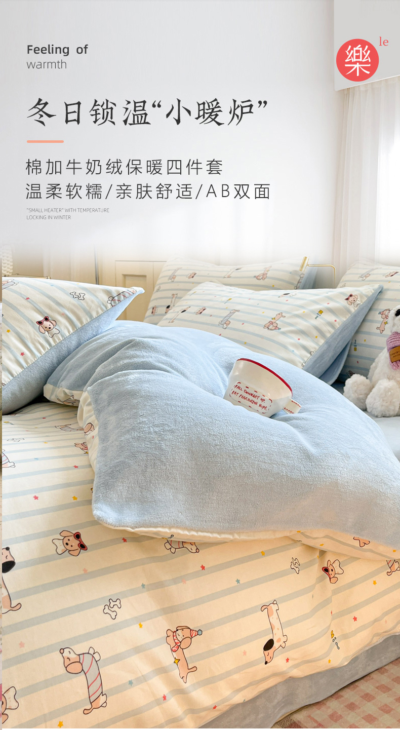 当前位置: 91家纺网 > 商品网购 > 床品套件 > 四件套 > 牛奶绒四件套 > 麦伦家居 2025秋冬新款多功能床品全棉+牛奶绒印花四件套 机灵旺仔