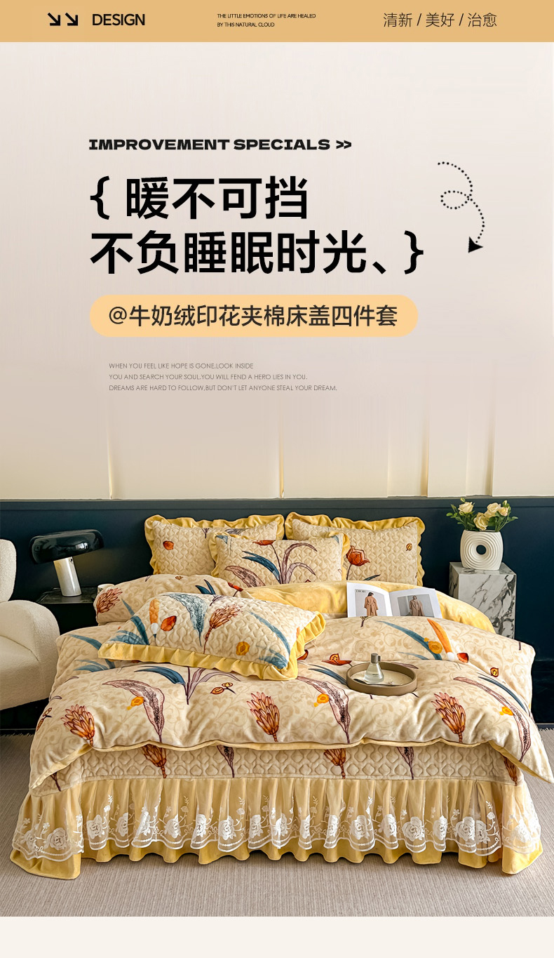 当前位置: 91家纺网 > 商品网购 > 床品套件 > 四件套 > 牛奶绒四件套 > 棉森家纺 2025新款亲肤舒适牛奶绒床盖四件套 诗情画意