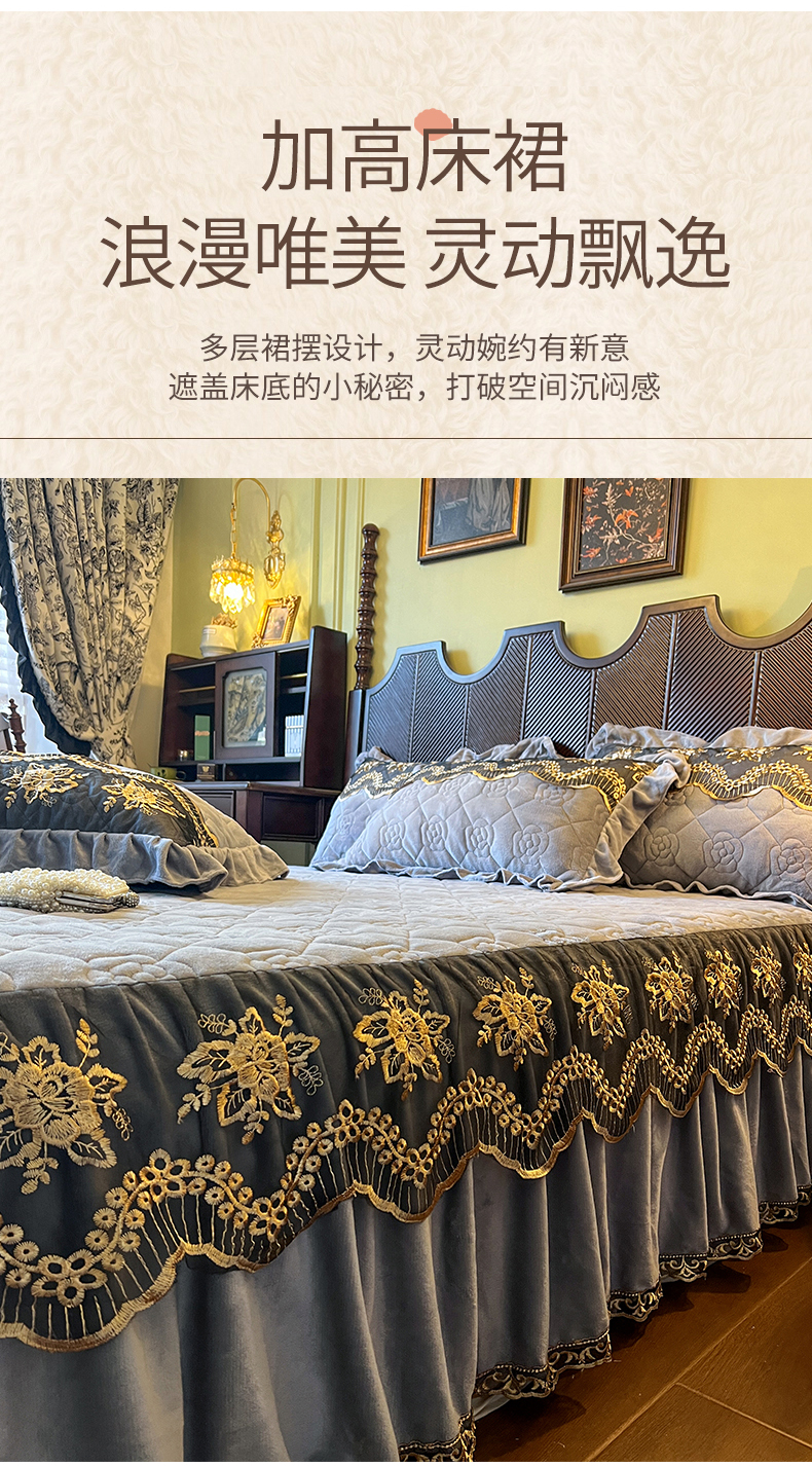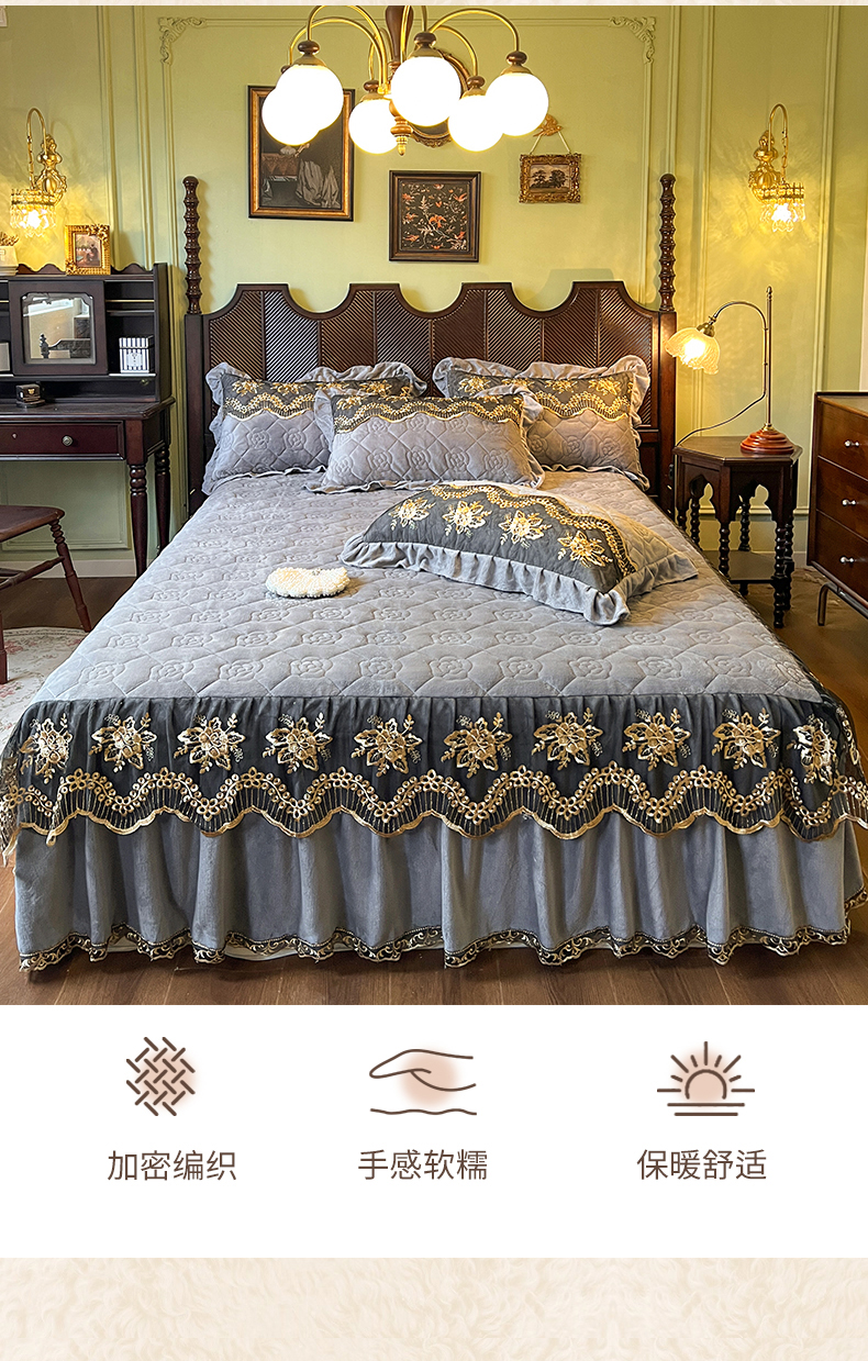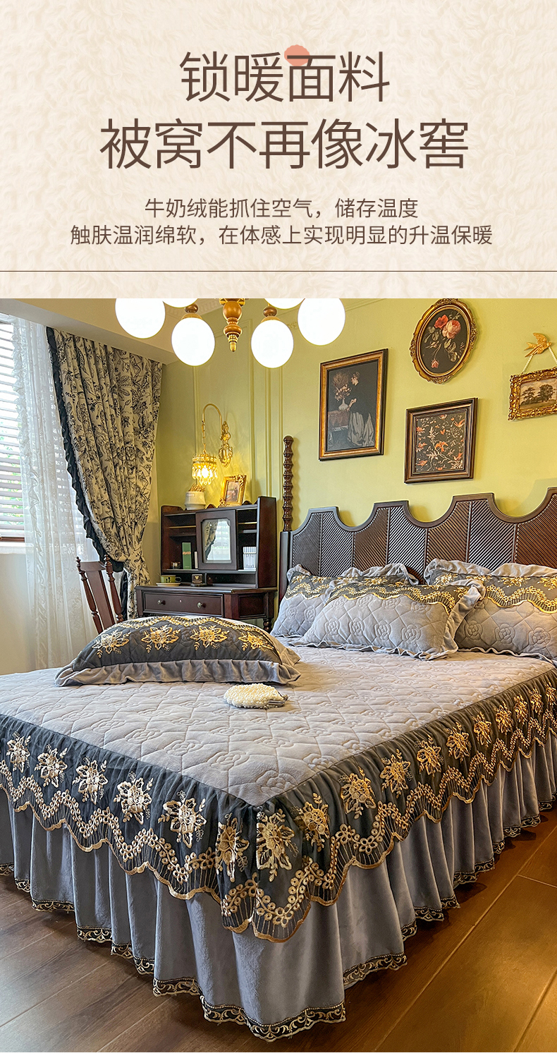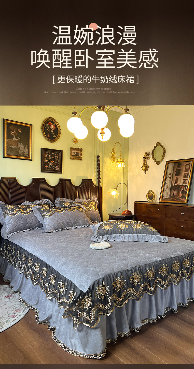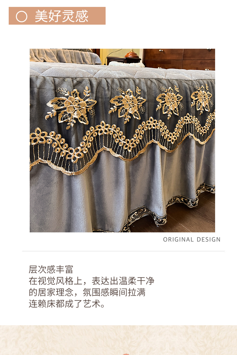 • 91家纺网 家纺一手货源 找家纺 网红馆(ck家纺) 2025新款高克重牛奶绒单床裙 床裙单件卡妮娜系列 卡妮娜-灰色