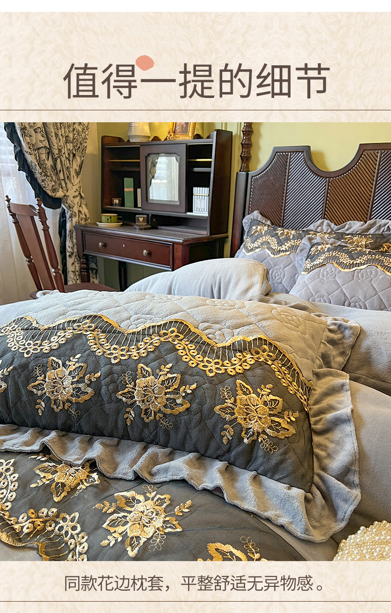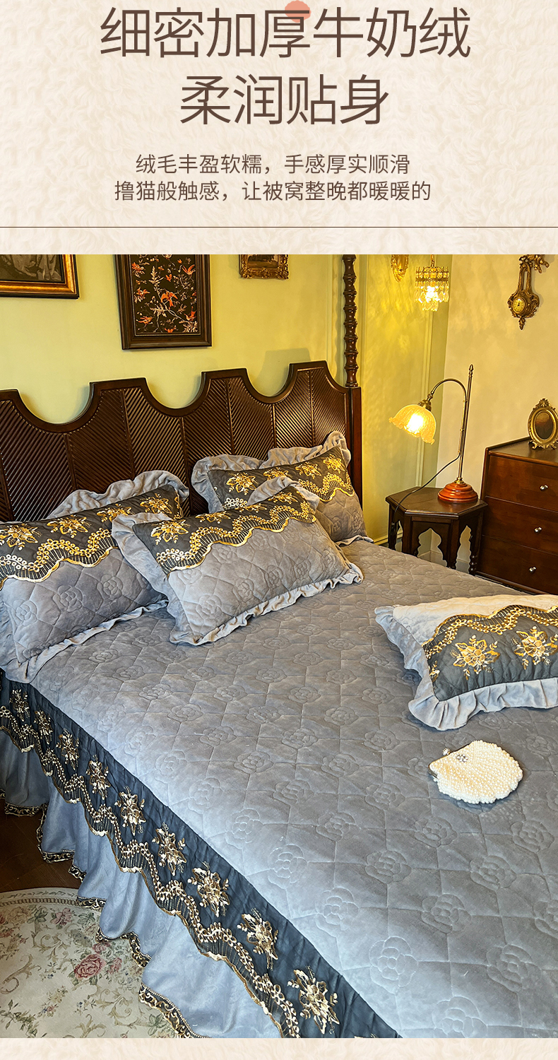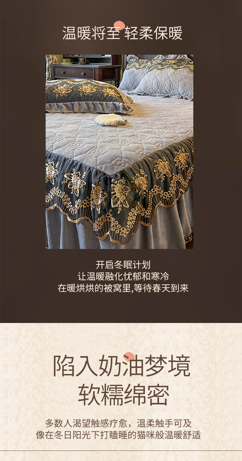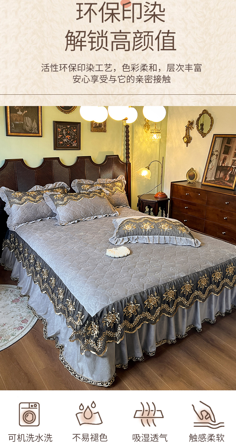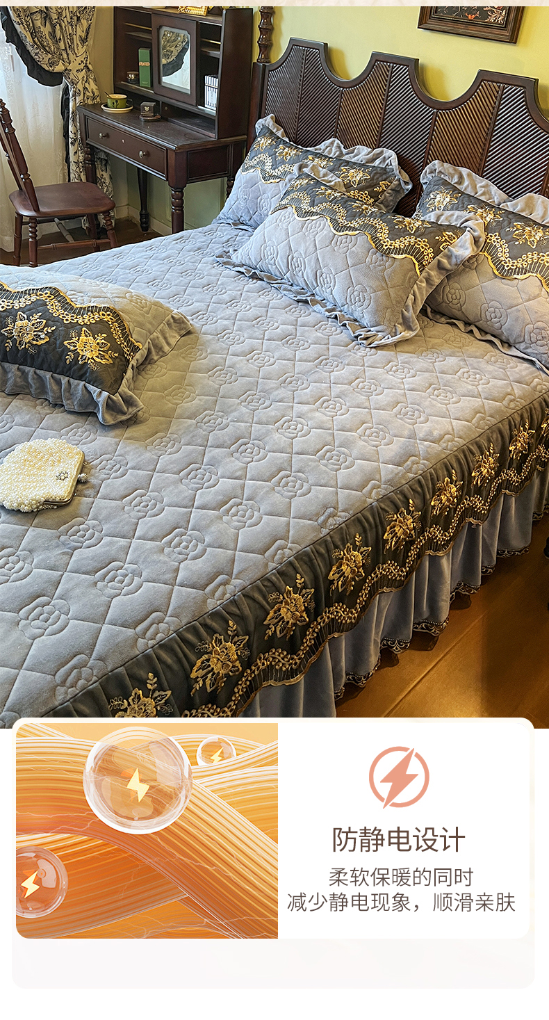 • 91家纺网 家纺一手货源 找家纺 网红馆(ck家纺) 2025新款高克重牛奶绒单床裙 床裙单件卡妮娜系列 卡妮娜-灰色