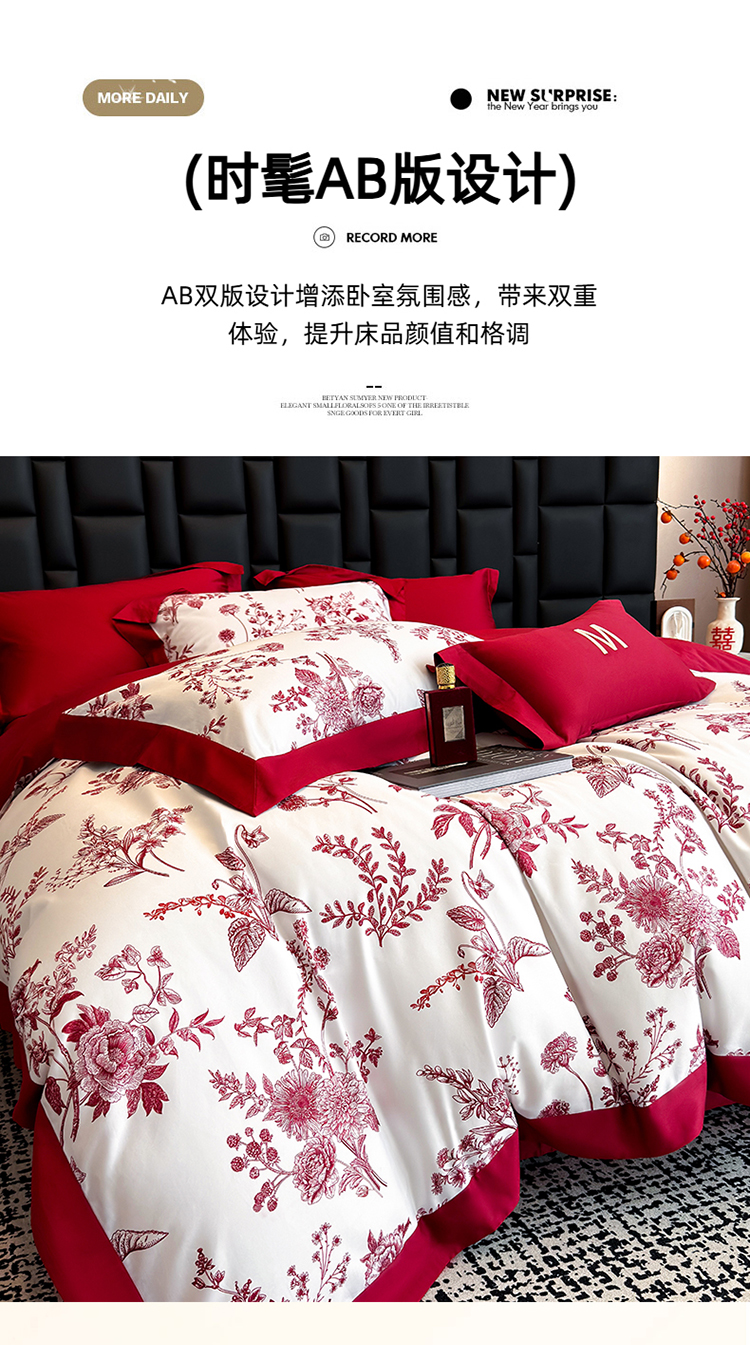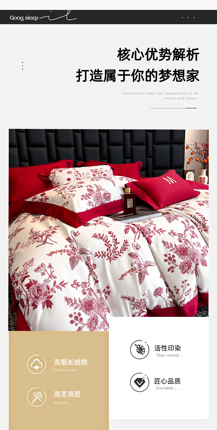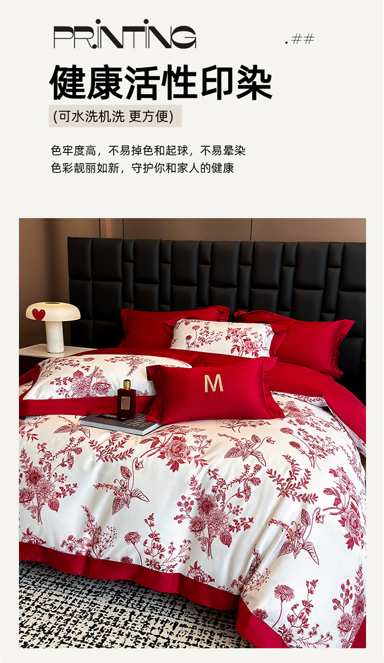 当前位置: 91家纺网 > 商品网购 > 床品套件 > 四件套 > 贡缎全棉四件套 > 高档礼盒装50*50S贡缎长绒棉数码印花四件套100%纯棉全棉床单床笠款量大价优 大红-雪莉-A类贡缎长绒棉