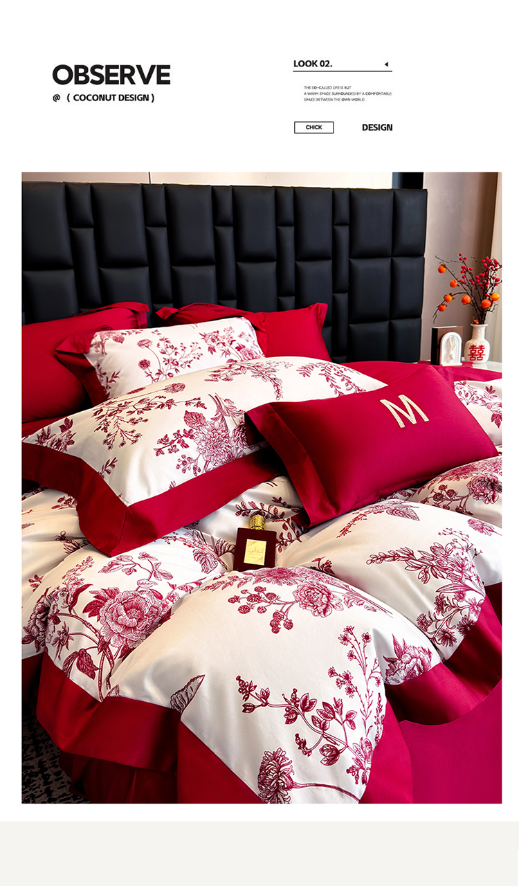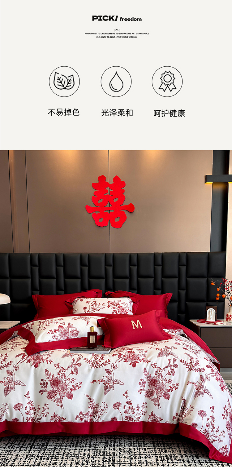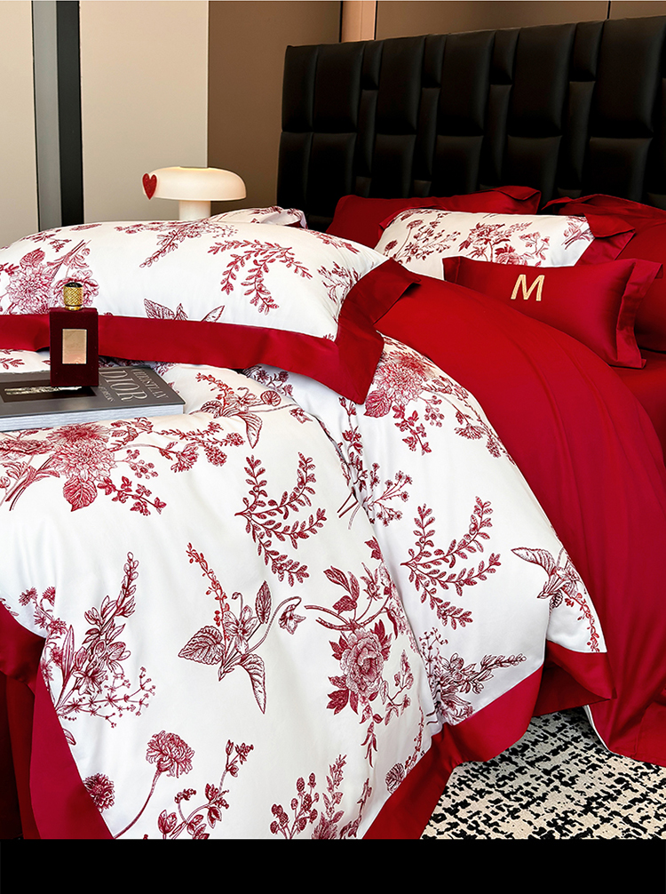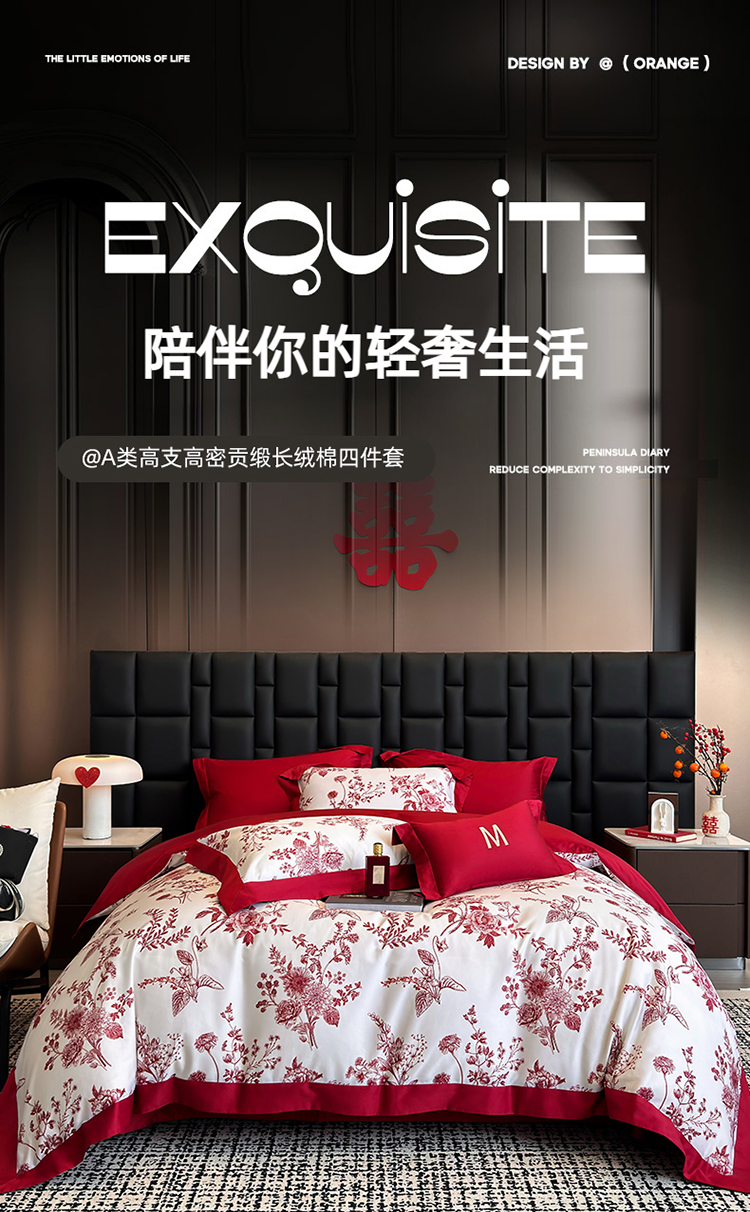 当前位置: 91家纺网 > 商品网购 > 床品套件 > 四件套 > 贡缎全棉四件套 > 高档礼盒装50*50S贡缎长绒棉数码印花四件套100%纯棉全棉床单床笠款量大价优 大红-雪莉-A类贡缎长绒棉