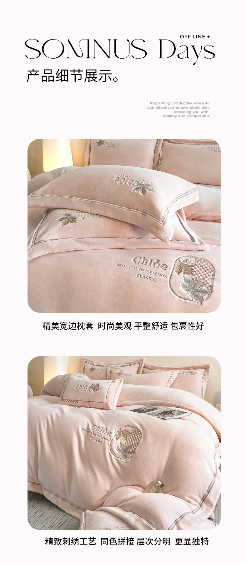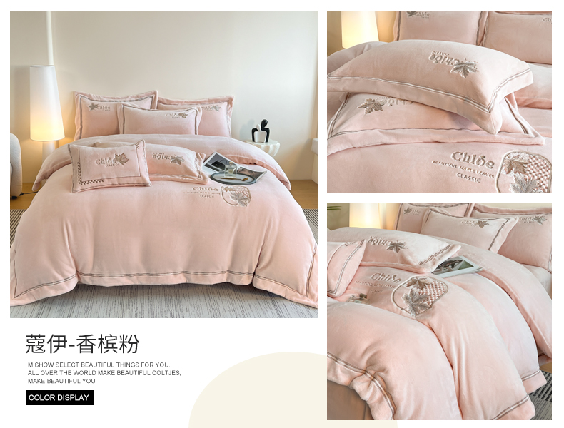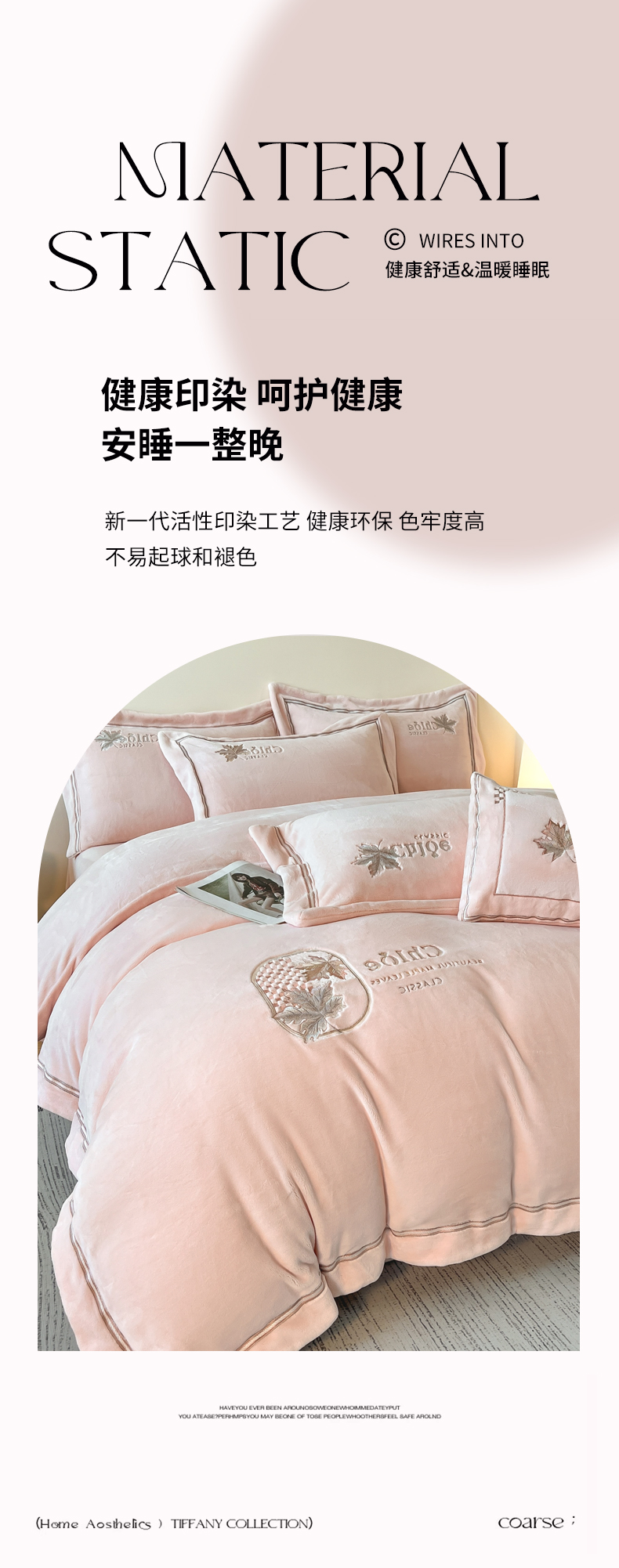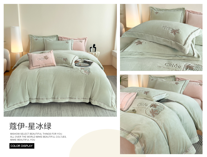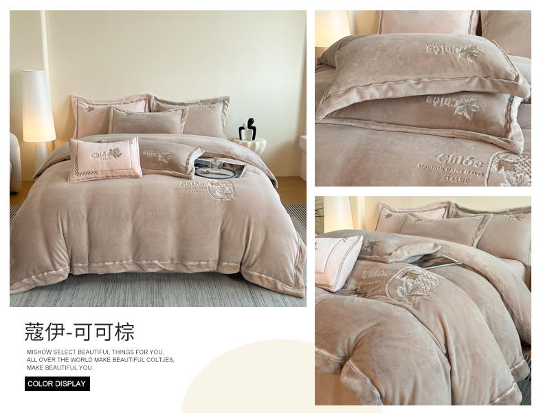 (总)牛奶绒宝宝水晶绒法莱冰岛绒简约轻奢拼接刺绣保暖冬季保温四件套利尔赛,利尔赛-可可棕,利尔赛-香槟粉,利尔赛-星冰绿