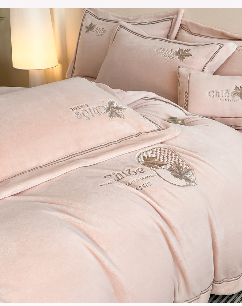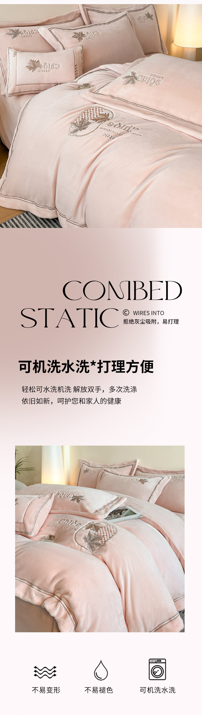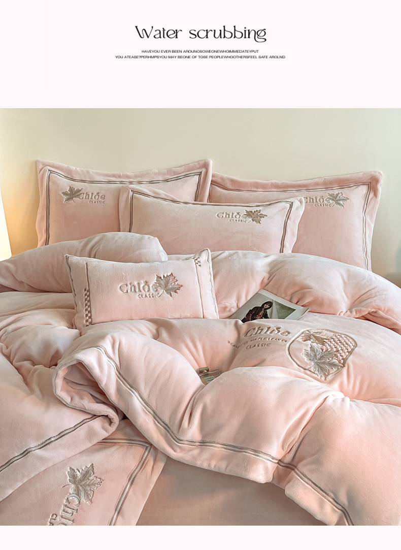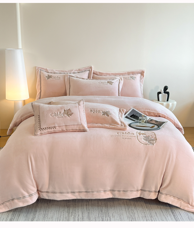 (总)牛奶绒宝宝水晶绒法莱冰岛绒简约轻奢拼接刺绣保暖冬季保温四件套利尔赛,利尔赛-可可棕,利尔赛-香槟粉,利尔赛-星冰绿