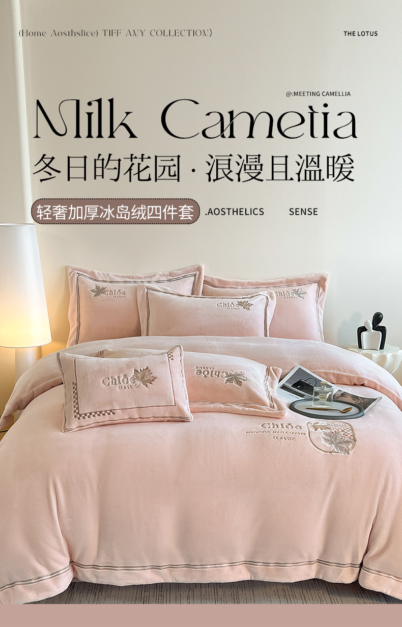 (总)牛奶绒宝宝水晶绒法莱冰岛绒简约轻奢撞色拼接款保暖冬季保温四件套蔻伊