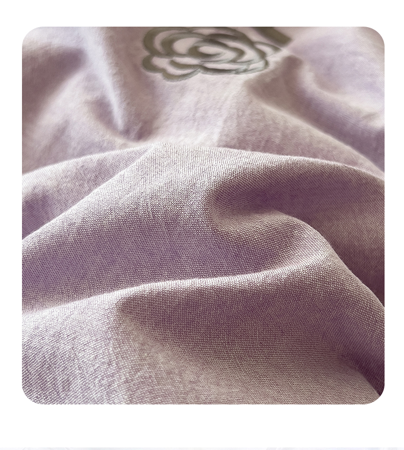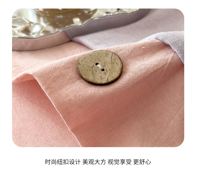 商品名称:芃成家纺 2025新款A类全棉色织水洗棉纽扣绣花四件套 纽扣款-浅紫拼浅粉