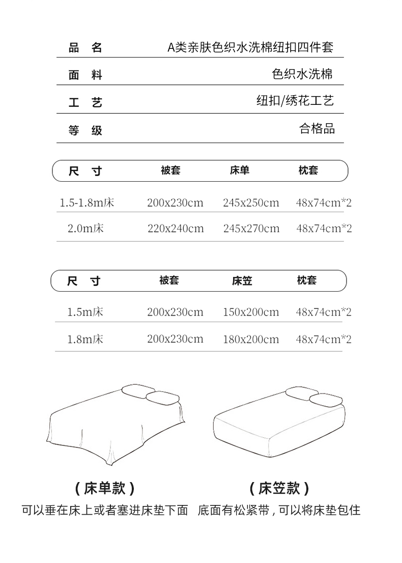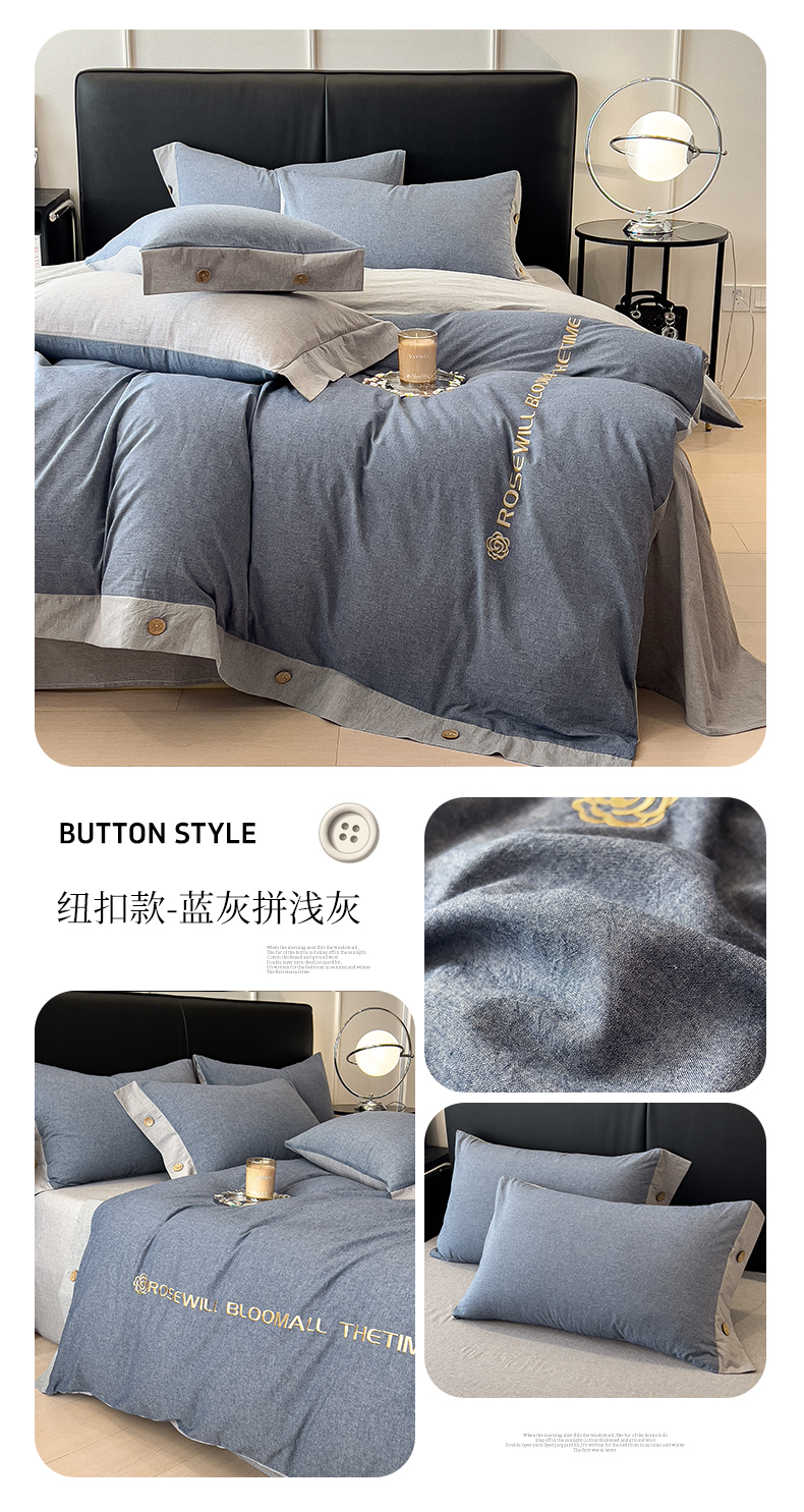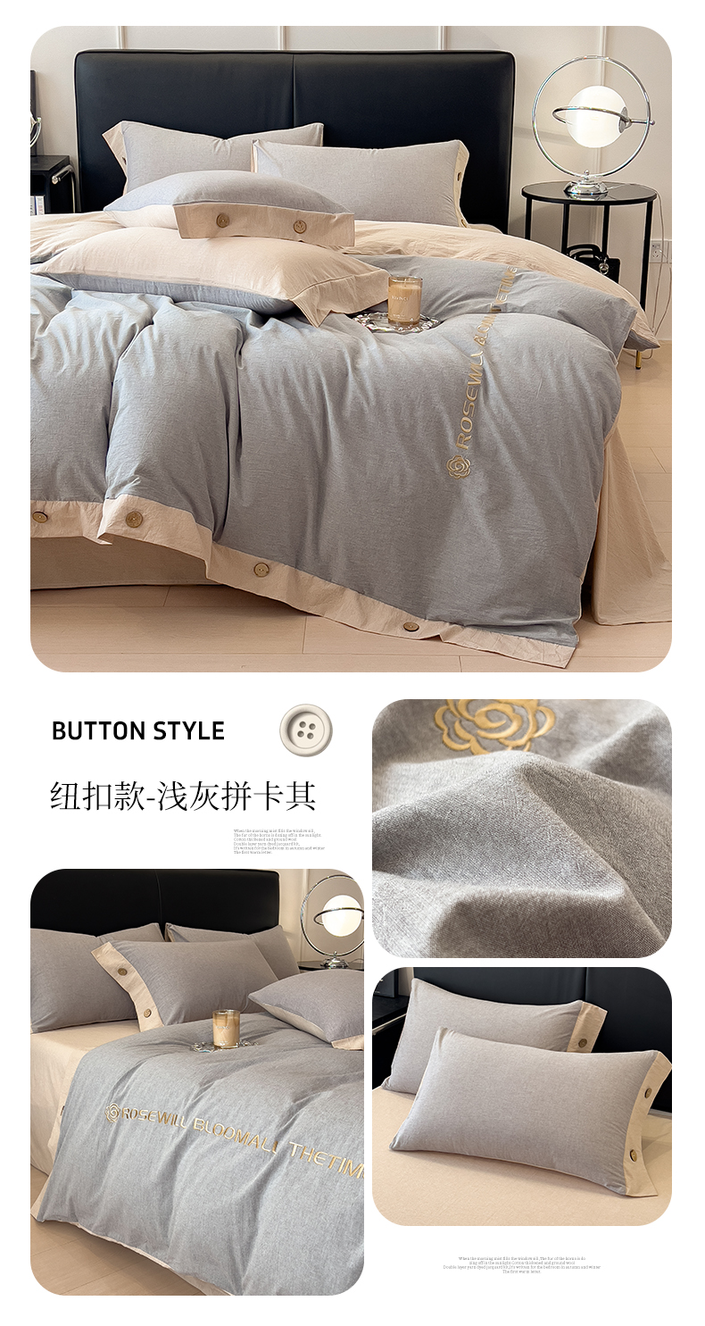 (总)芃成家纺 2025新款A类全棉色织水洗棉纽扣绣花四件套,纽扣款-白色拼浅绿,纽扣款-豆沙拼深灰,纽扣款-卡其拼浅绿,纽扣款-蓝灰拼浅灰,纽扣款-浅粉拼浅灰,纽扣款-浅灰拼卡其,纽扣款-浅蓝拼卡其,纽扣款-浅绿拼浅灰,纽扣款-浅紫拼浅粉,纽扣款-深灰拼浅灰
