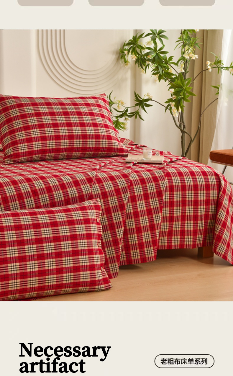 (总)织雅漫 2025新款高端帛丝系列全棉纯棉细纱老粗布床单,铂丝-红,素律-黄,素律-蓝,素律-绿,扶霞-咖,扶霞-兰,扶霞-米,慕川-茜粉