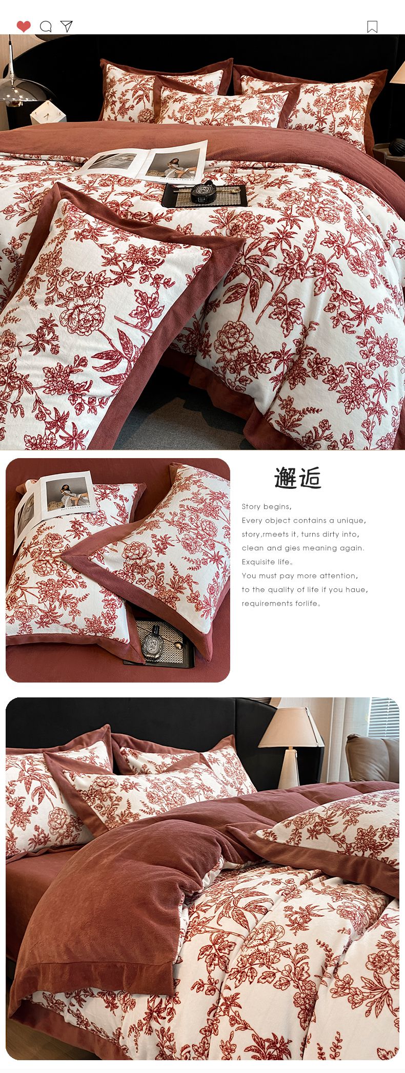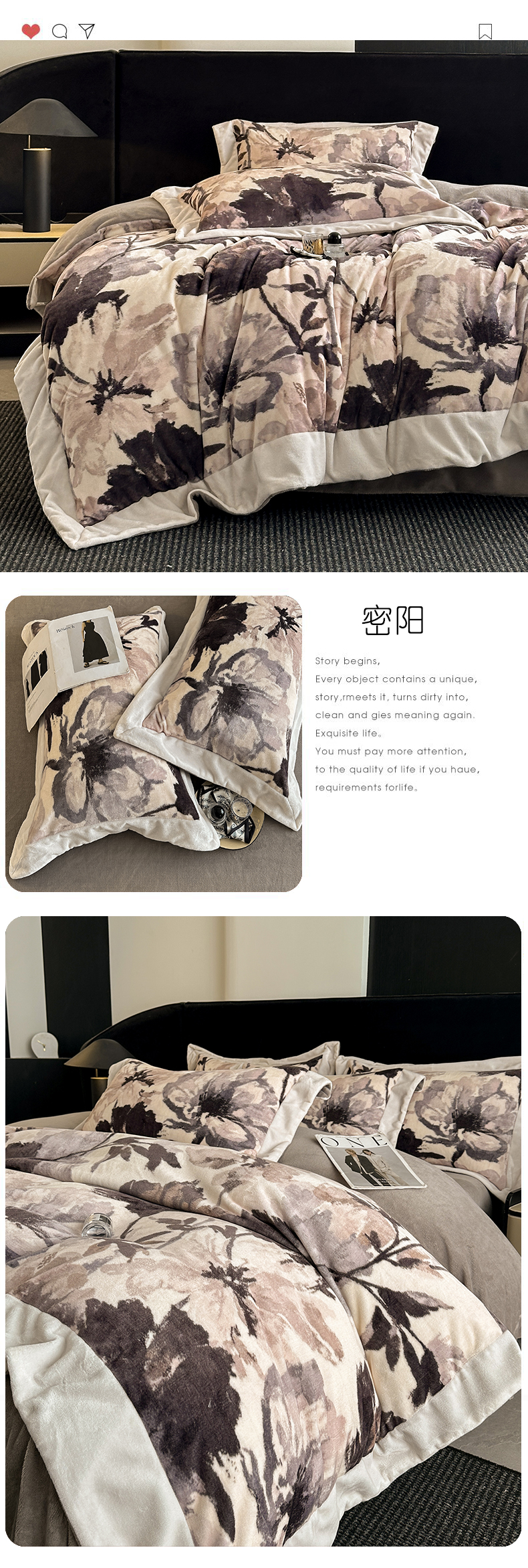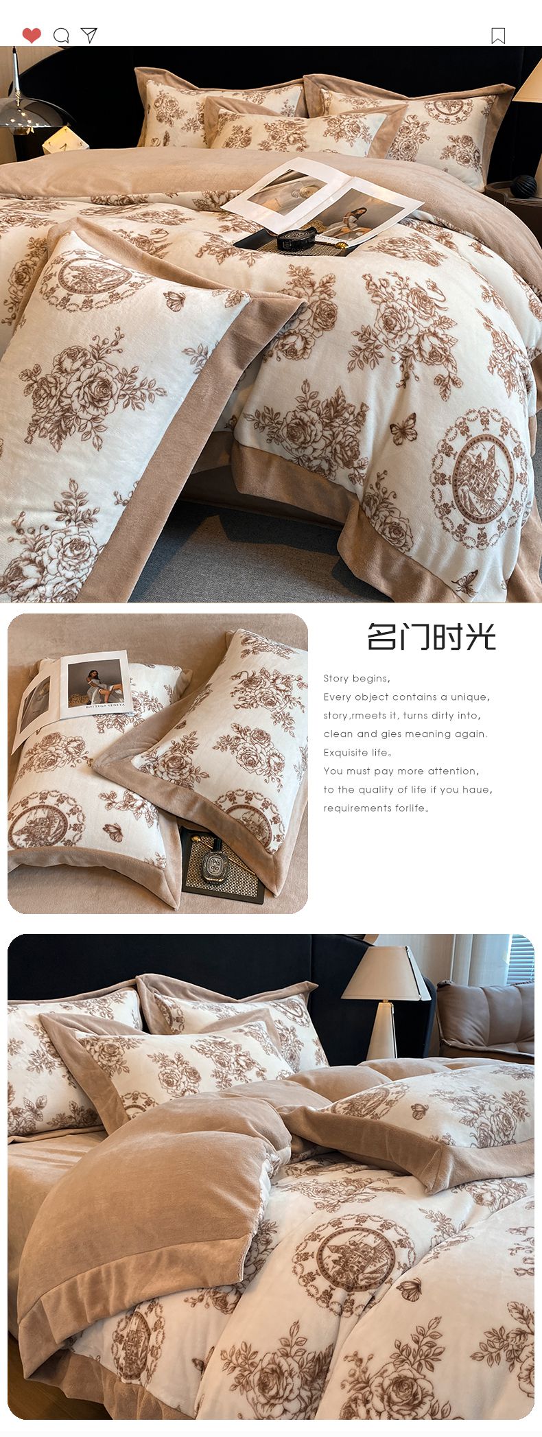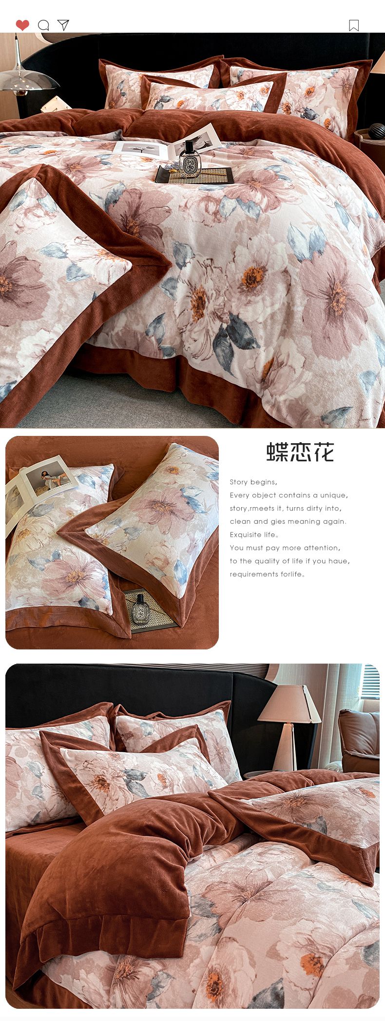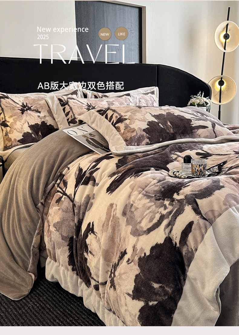 花漾家居 2024新款宽边牛奶绒四件套 秋日恋曲,秋日恋曲