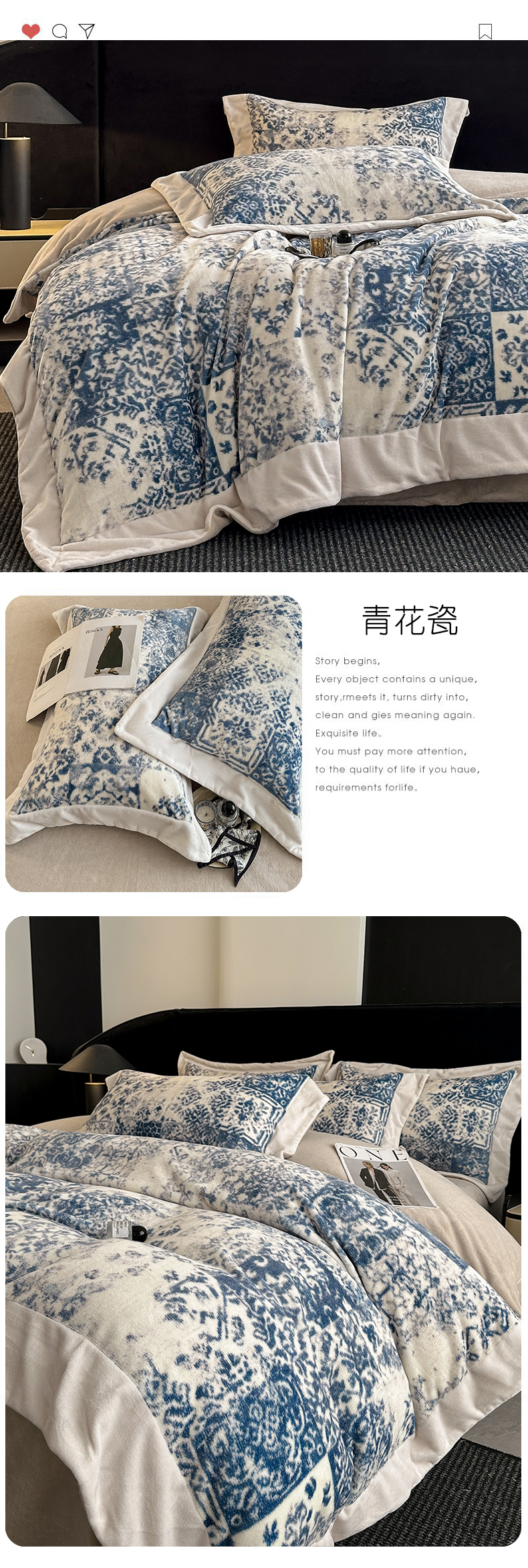 花漾家居 2024新款宽边牛奶绒四件套 月影,月影