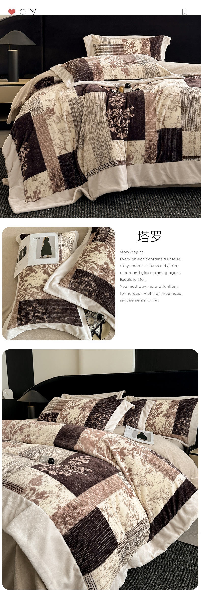 商品名称:花漾家居 2025新款轻奢复古格条民族宽边牛奶绒四件套 密阳