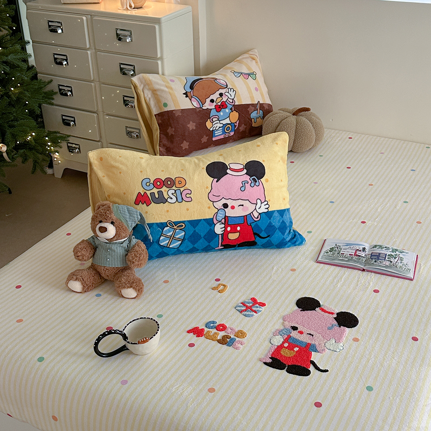 (总)柚子YOUTH 2025新款全棉纯棉工艺款13070贴布绣四件套,爱心小象,毛绒小狗,蘑菇女孩,星星法师
