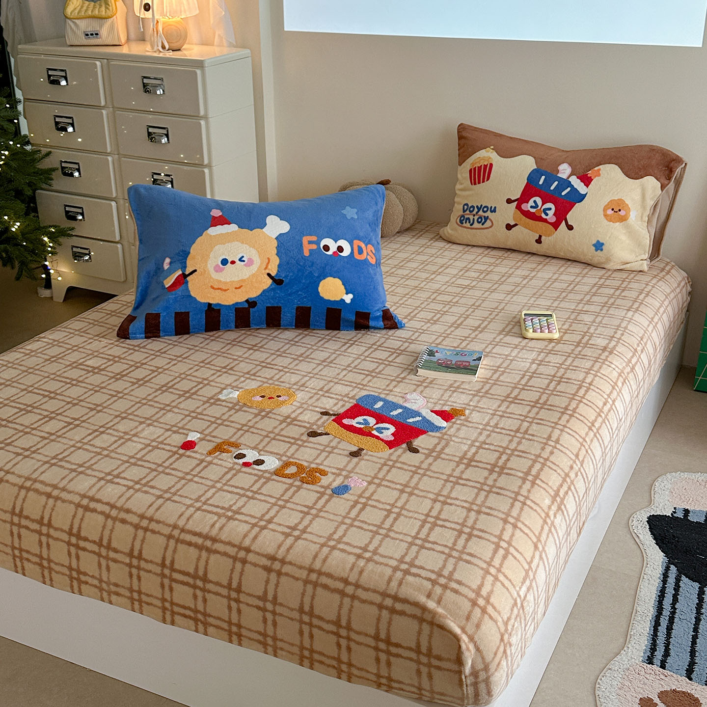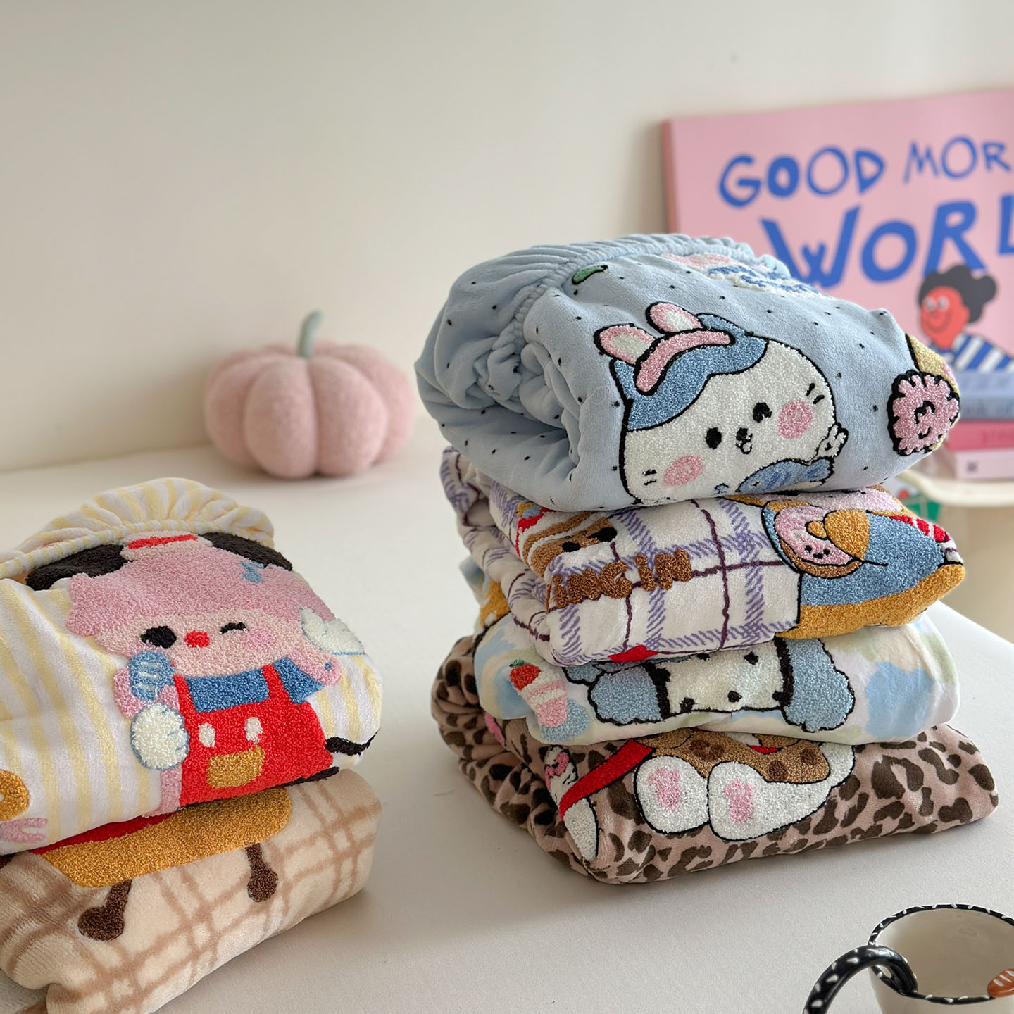 柚子YOUTH 2025新款加厚牛奶绒卡通毛巾绣床笠三件套 能量套餐