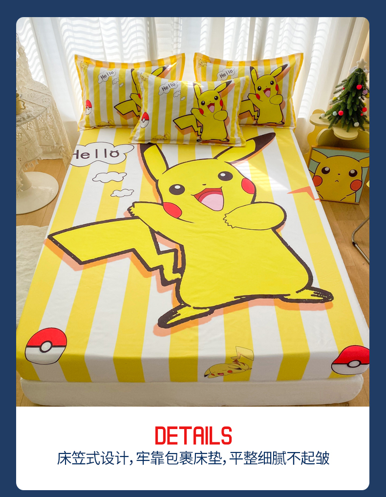 • 91家纺网 家纺一手货源 找家纺 一电 2024新款卡通床单床笠棕垫床套防尘罩席床垫保护套卡通儿童上下床床单床笠-第二批 开心皮卡丘