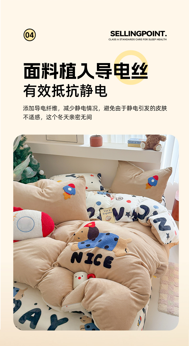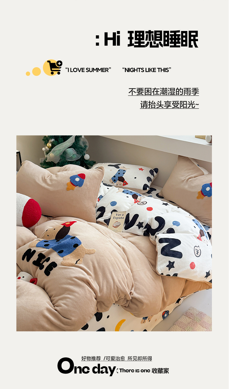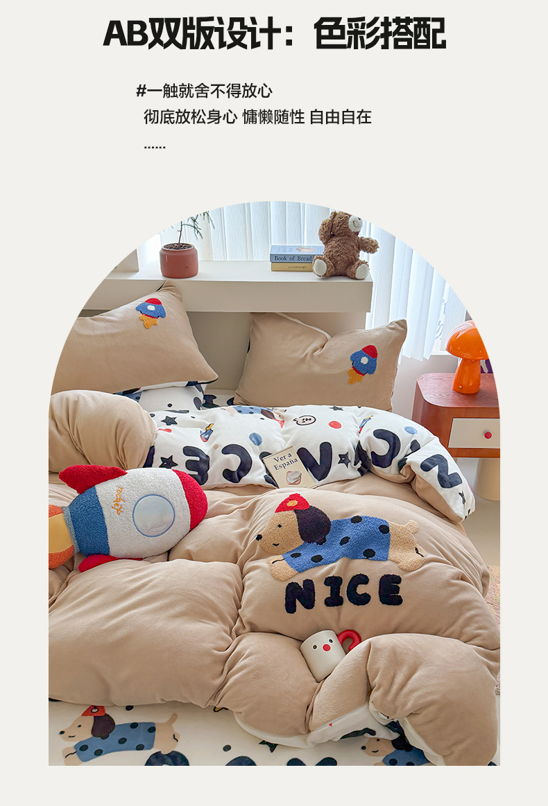 商品名称:艾特你 2025新款毛巾绣200克牛奶绒卡通毛巾绣四件套 快乐小狗