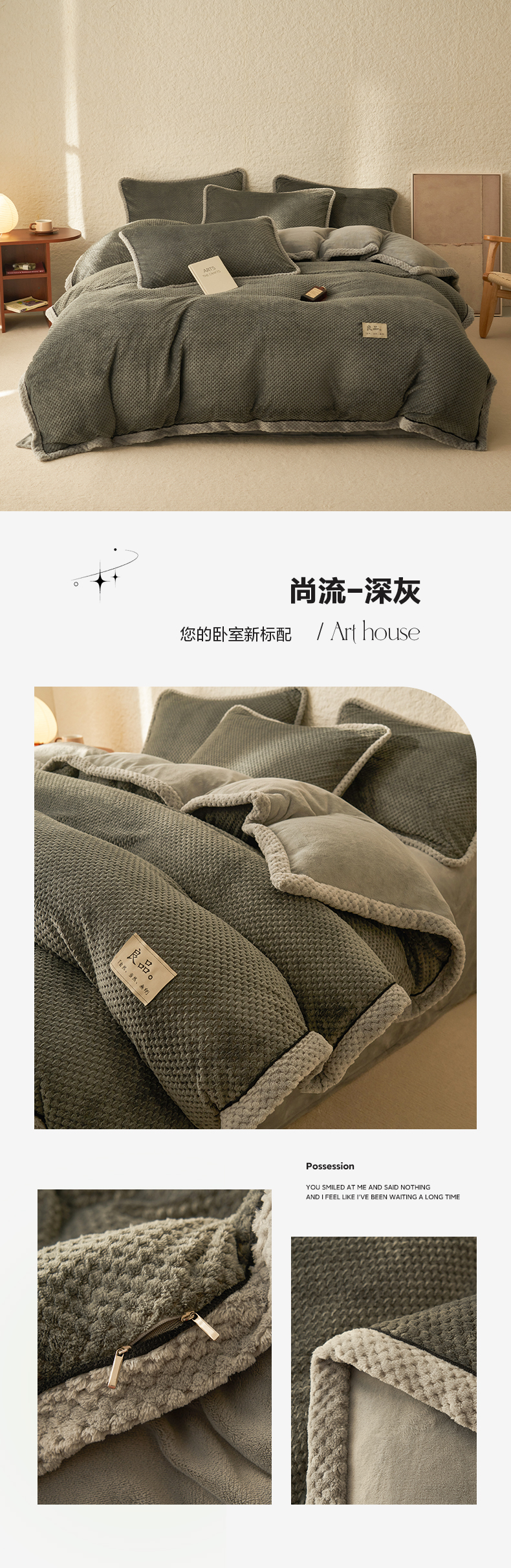 • 91家纺网 家纺一手货源 找家纺 早晨家纺 2025新款尚流款牛奶绒提花-单被套 尚流-浅灰