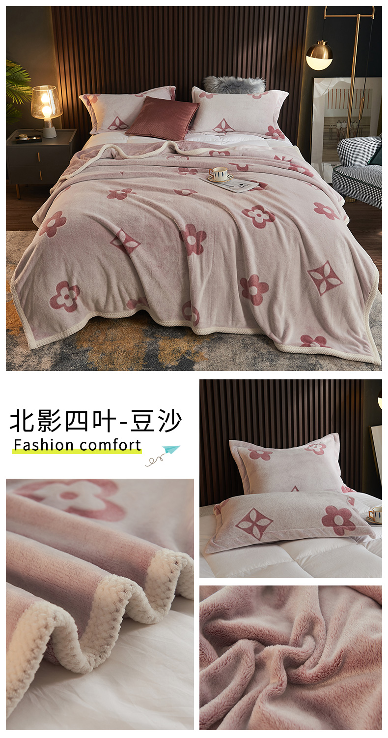 商品名称:早晨家纺 2025新款北影款-印花单层毛毯 北影四叶-桔