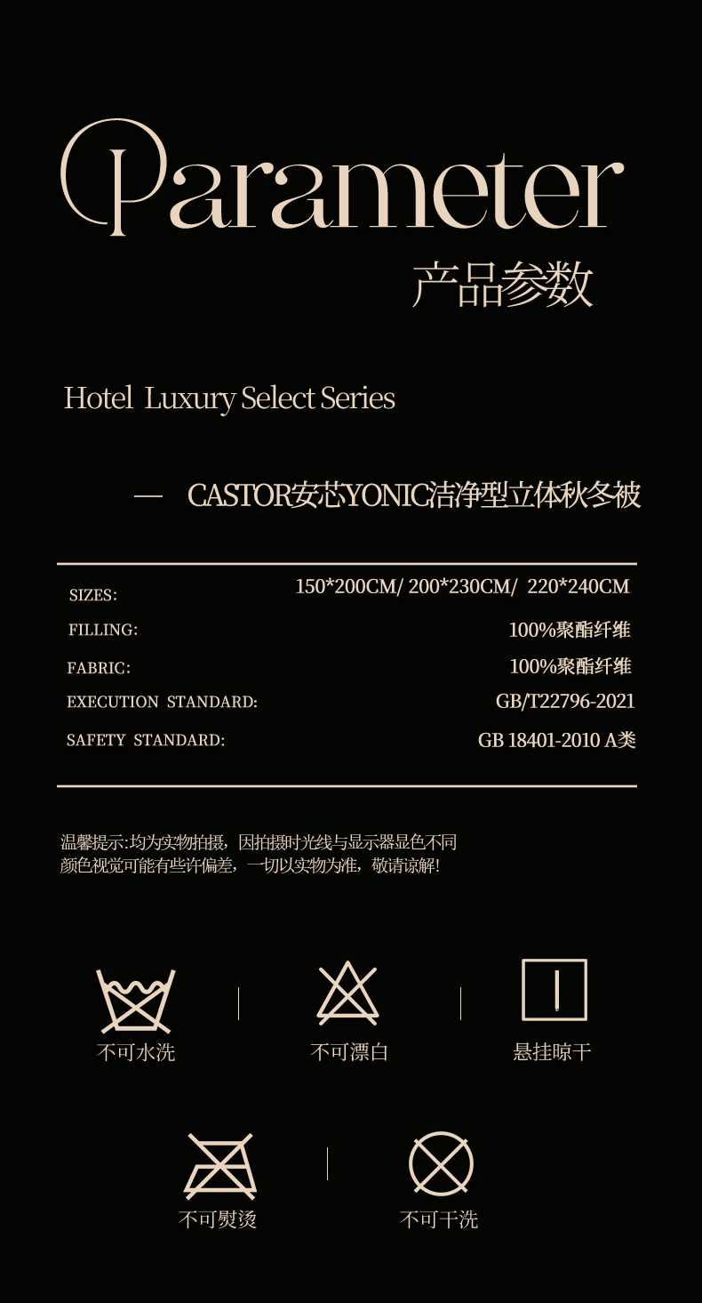 当前位置: 91家纺网 > 商品网购 > 被子 > 冬被 > 头等舱 2025新款酒店款净植力抗菌 防螨 防霉 低致敏 立体秋冬被(模特图) 珍珠白