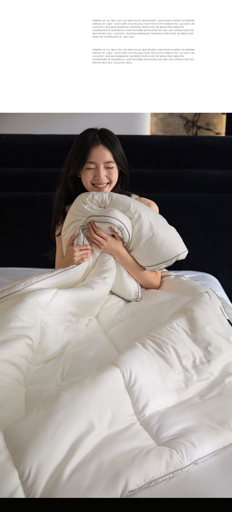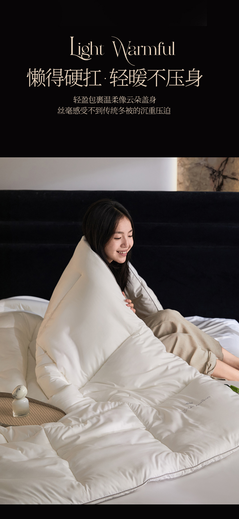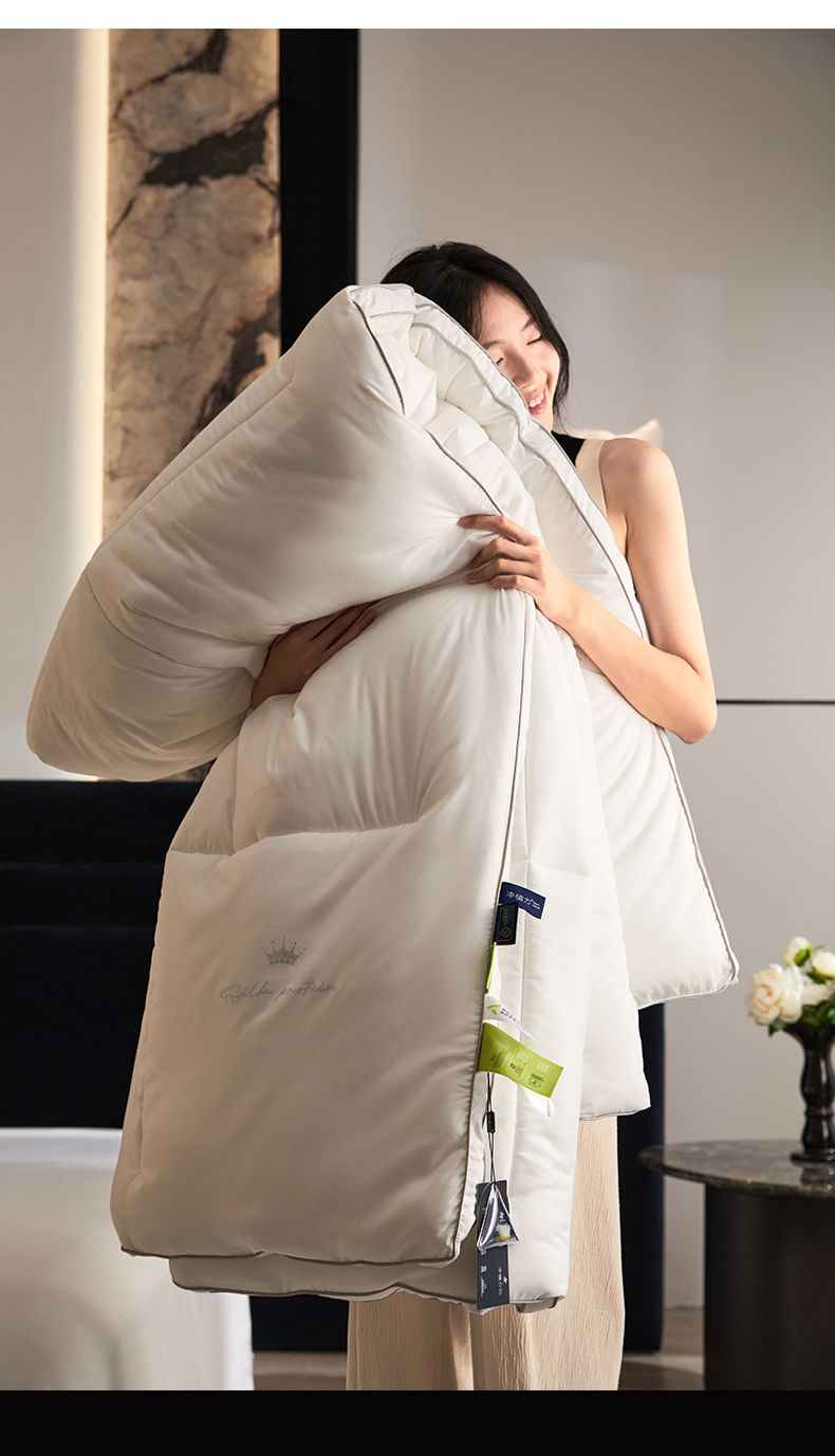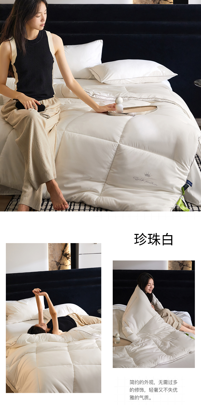 • 91家纺网 家纺一手货源 找家纺 头等舱 2025新款酒店款净植力抗菌 防螨 防霉 低致敏 立体秋冬被(模特图) 珍珠白
