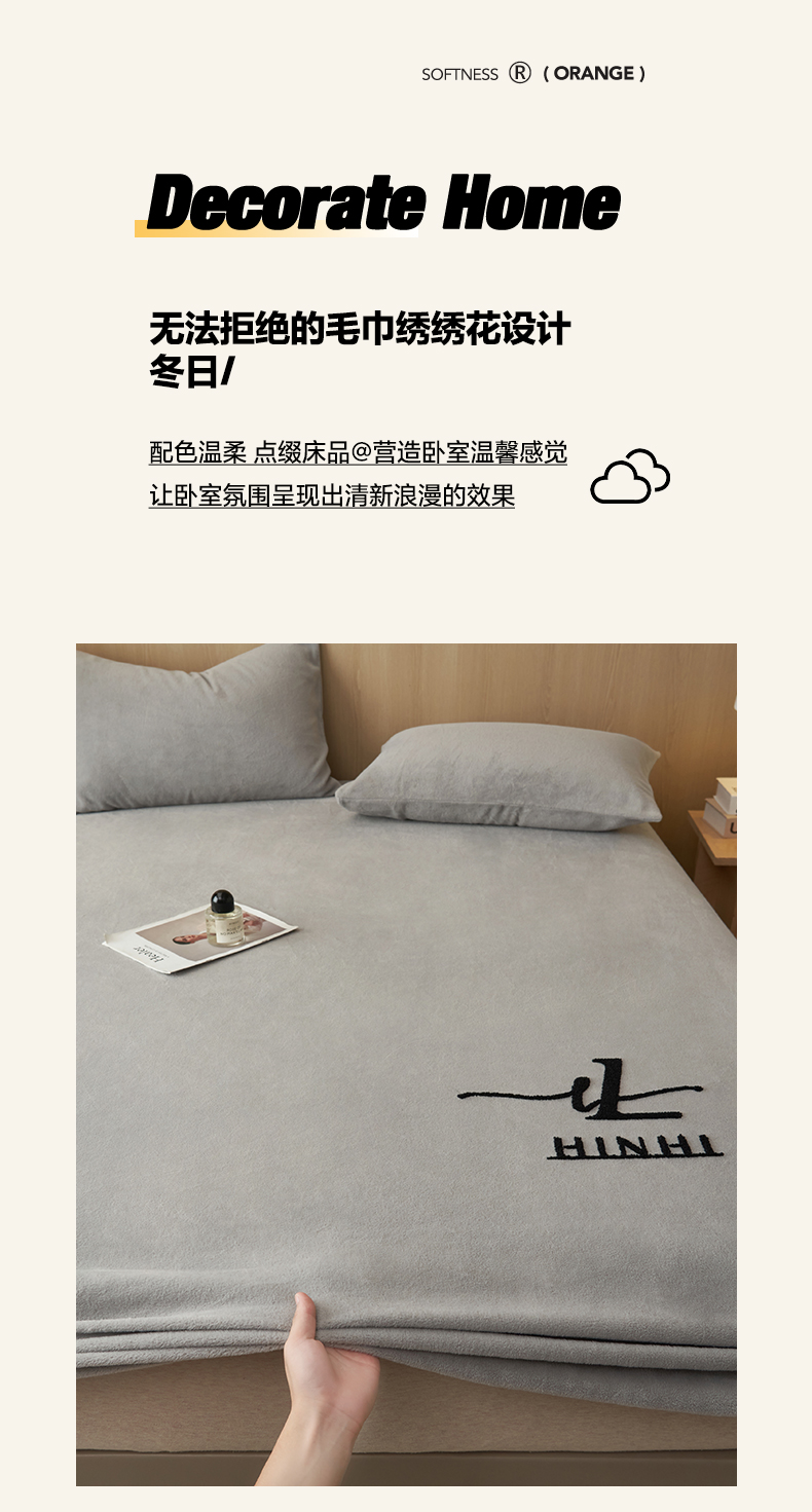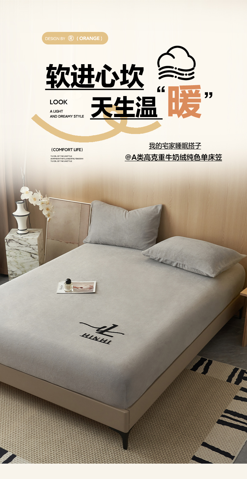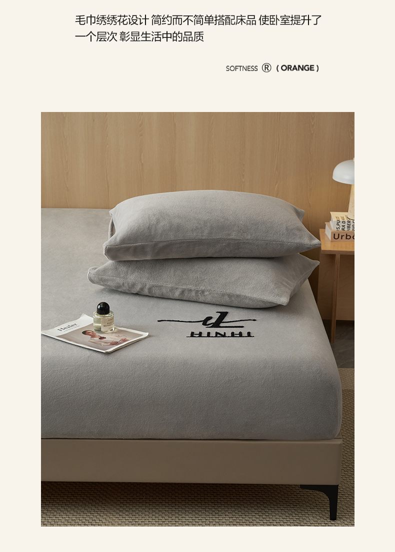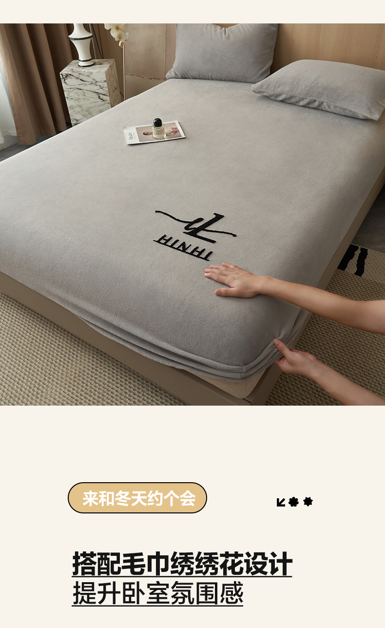 • 91家纺网 家纺一手货源 找家纺 早晨家纺 2025新款牛奶绒纯色毛巾绣暖绒床笠 时尚-浅灰